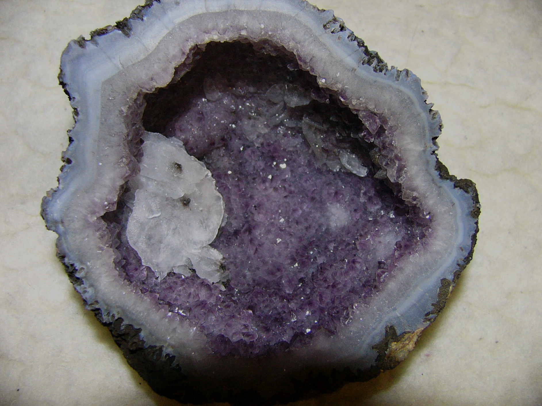 Hier hab ich mal eine "Stufe", bei der die Amethystkristalle einmal komplett herum zu gehen scheinen. Ich glaube, das nennt man Schwimmer?