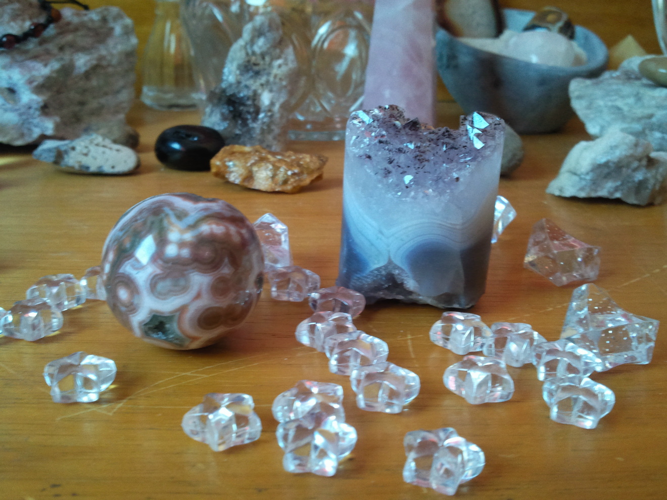 Dank meinem Schnuggie SAR-INA zogen bei mir gestern eine traumhaft schöne Ozeanerkugel und ein sehr heller Amethyst-Bohrkern ein.. kann mich garnet dran satt sehen an den beiden und muss es unbedingt mit euch teilen