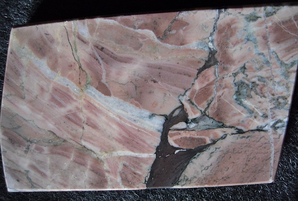 für die, die von diesem 'marmor' nur einen optischen eindruck gewinnen möchten, eine ablichtung (m)einer kleinen steinplatte von, die sehr gut die lebendige marmorierung dieses steins wiedergibt. irgendwo habe ich zwar noch einen selbst gefundenen winzling, aber der hat sich irgendwohin vertrollt; will vielleicht nicht fotografiert werden