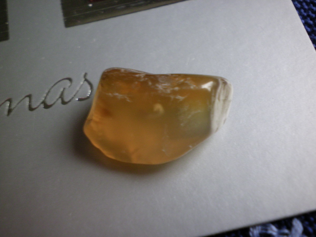 Ich bin mir unsicher, ob das ein Citrin ist. Er ist durchscheinend und nicht durchgängig gelb, sondern auch grau (durchscheinend). Er wirkt in allem irgendwie "milchiger" als ich das von einem Citrin kenne.