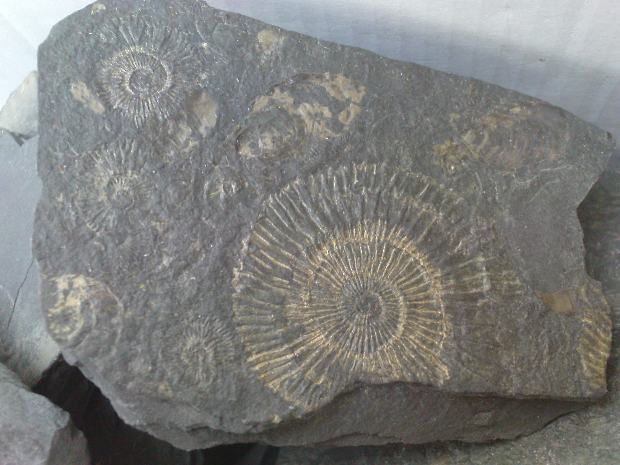 Möchte doch auch mal wieder ein paar Eigenfunde einstellen. Ich war im letzten Jahr mit meinem Freund auf der Schwäbischen Alb im Steinbruch in Holzmaden. Da kann man so ein bisschen in den großen Schieferhaufen nach Versteinerungen suchen. Ist natürlich kaum mal spektakuläres dabei. Ein paar hübsche Stücke haben wir trotzdem gefunden. Ein Teil blieb bei uns, den Rest haben wir in Schwiegerpapas Garten am Teich "verbaut".