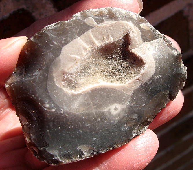 Die obige Detail-Aufnahme ist von diesem großen Flint mit Quarz