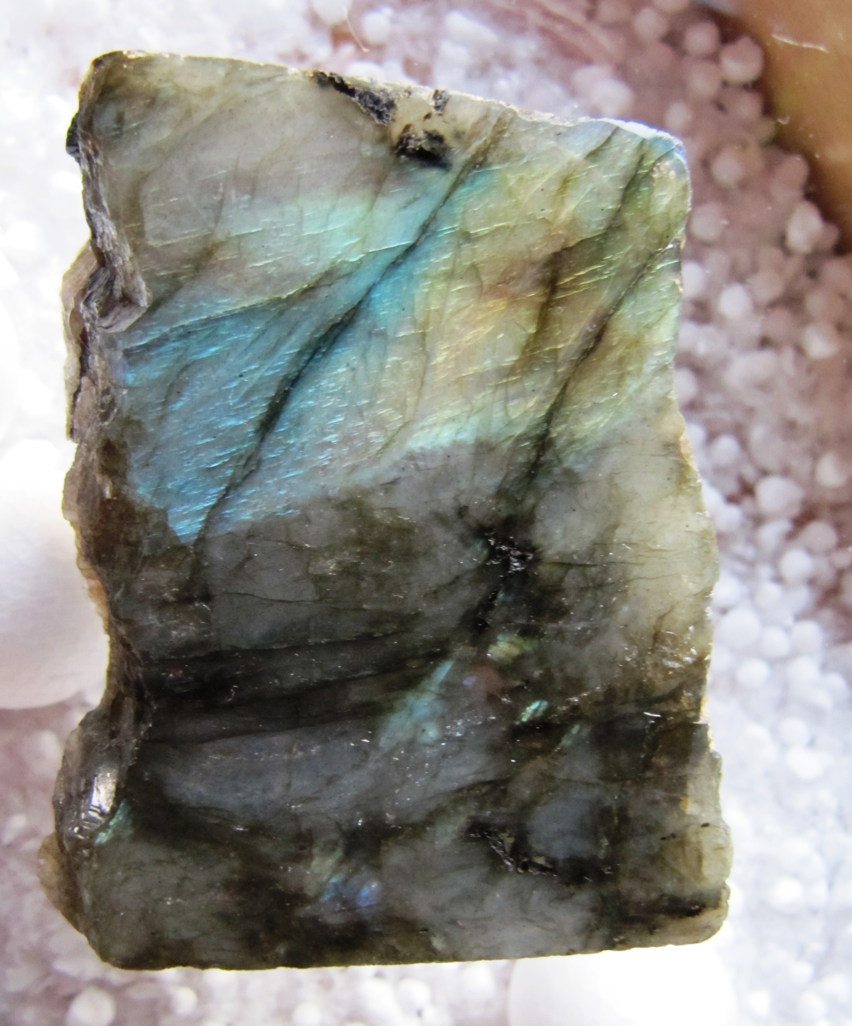 Und ein Labradorit aus Madagaskar, 2 kg schwer und 16,5 cm hoch.