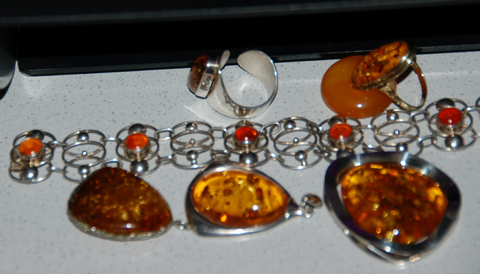 Das Bernstein im Armband scheint aber doch echt zu sein. Dieses Rot hätte ich eigentlich nicht für Bernstein gehalten.