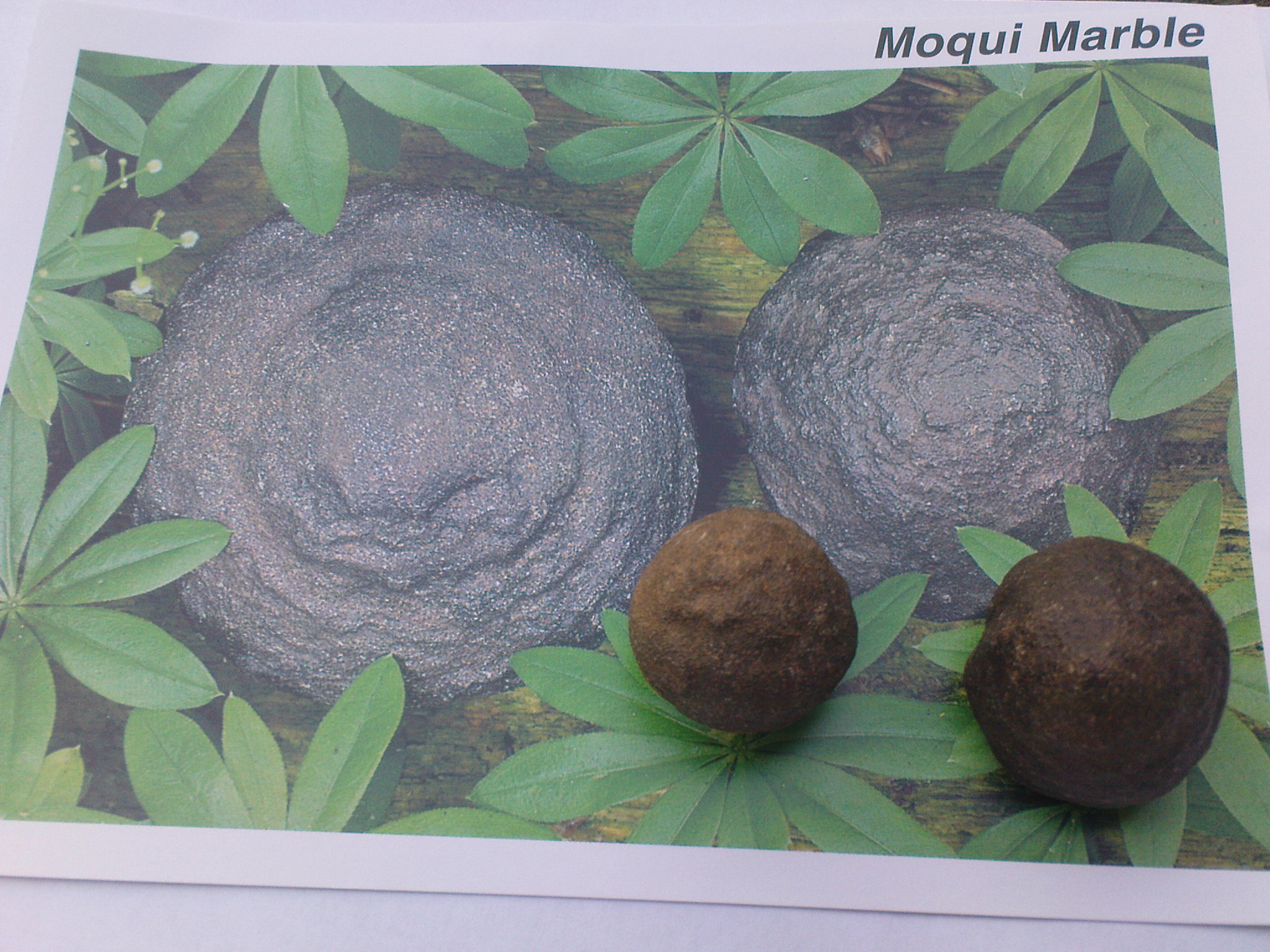 Moqui-Marbles erodieren aus Sandstein, so wie andere Konkretionen auch durch (meistens) Erosion aus ihrem Mutterboden oder Muttergestein zum Vorschein kommen. Durch Wind und Regen kommen sie an die Erdoberfläche.