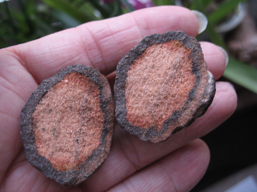 nämlich in Sandstein eingelagerte Eisenoxid-Kügelchen, Ooiden genannt. Faßt sich an wie Schmirgelpapier und geht auch etwas ab...