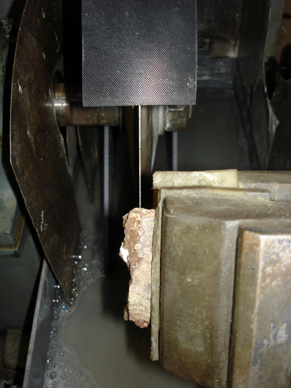 Größere Stücke werden von oben mittels Nasswinkelschleifer oder anderen