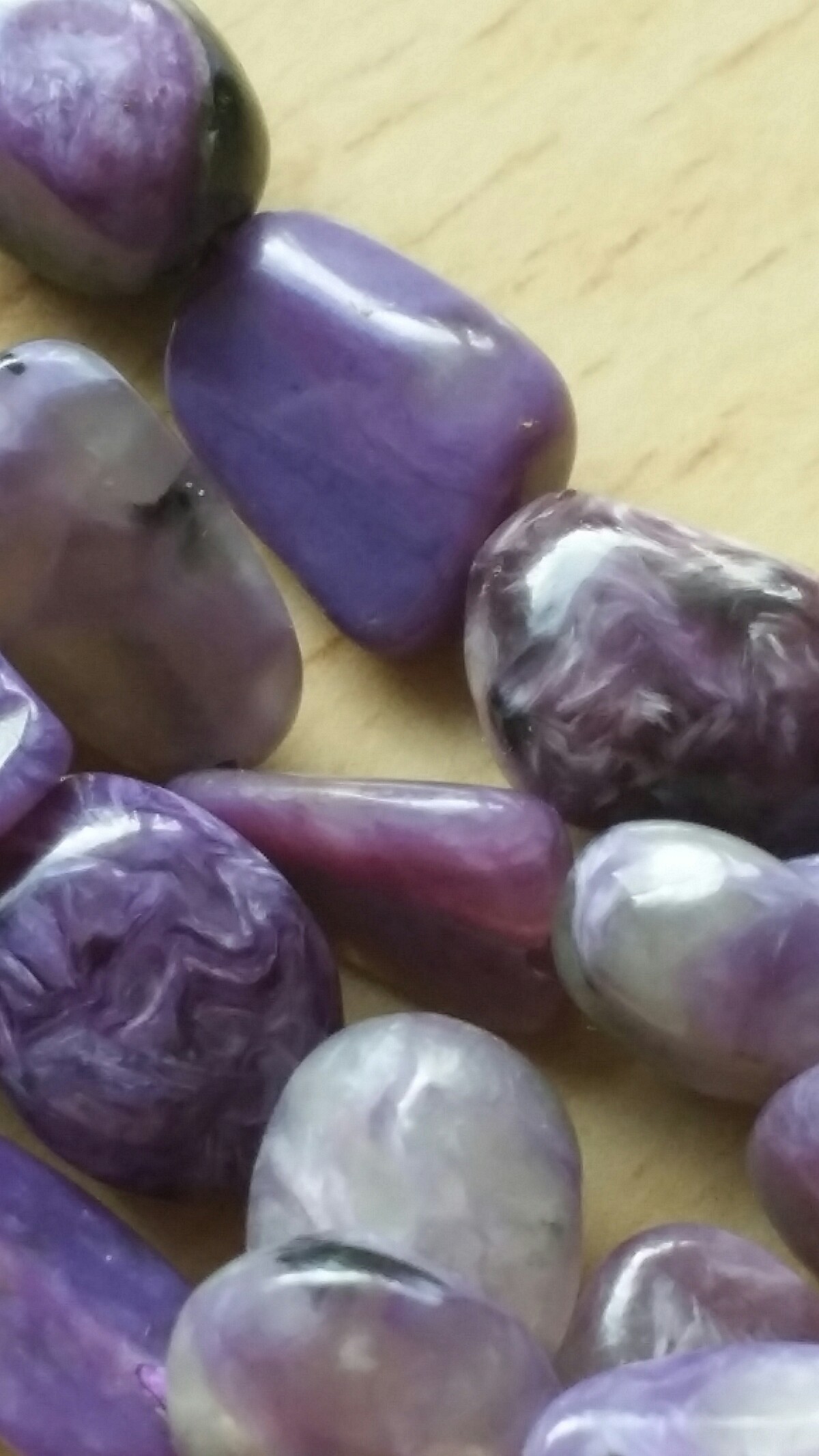 Also ich finde, so ganz auf den ersten Blick, dass dieser Strang bzw. die Struktur der Steine große Ähnlichkeit mit Charoit hat!