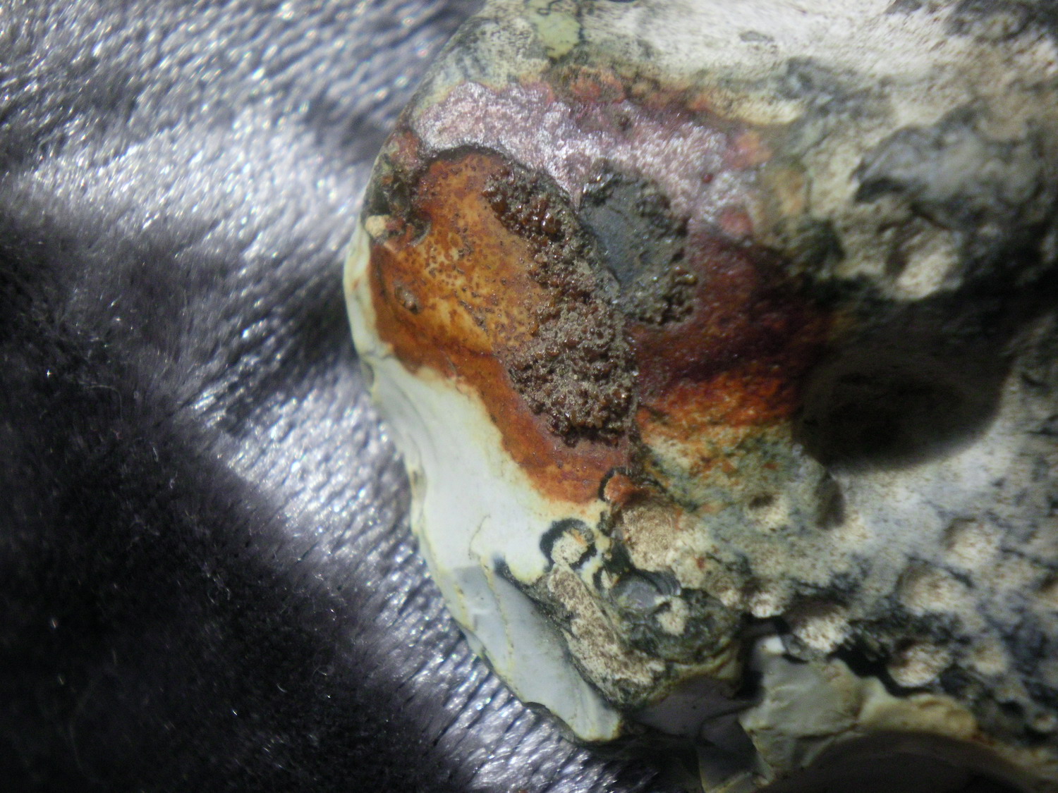 Beim betrachten mit der Lupe sah ich, das das, was ich für Sand auf dem roten (Eisen-?) Fleck gehalten habe, auf einmal wie Krokant-Kristalle aussah.....