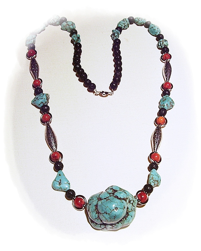 Die Kombi von Türkisen, roter Koralle und Lavakugeln finde ich einmalig.