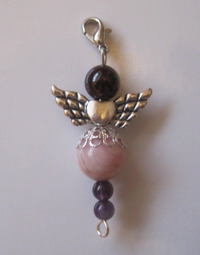 Das 1. Engelchen ist aus Amethyst, Rosenquarz und Granat.