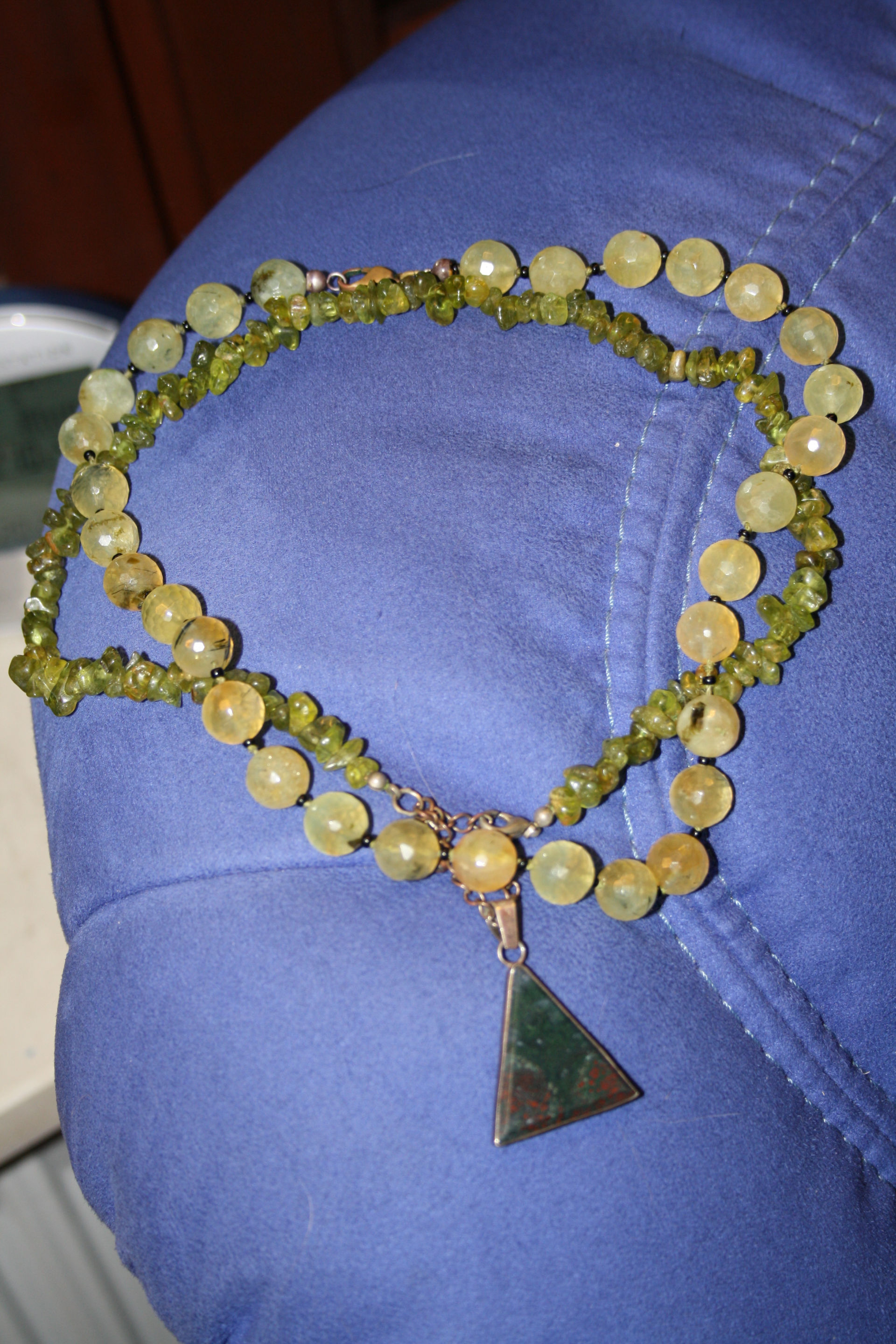 Peridotkette mit Anhänger-Heliotrop und Prehnitkette.