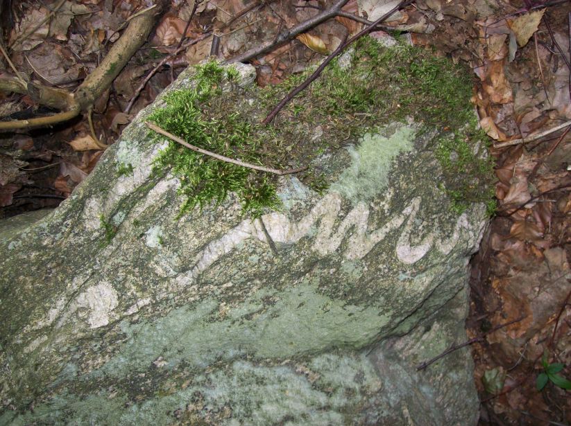 wenn ich mit Leuten unterwegs bin und an der Stelle vorbei komme sage ich immer das ich mir an dem Stein immer die Stifel sauber stubse und seit der Zeit ist der Stein so gefaltet.