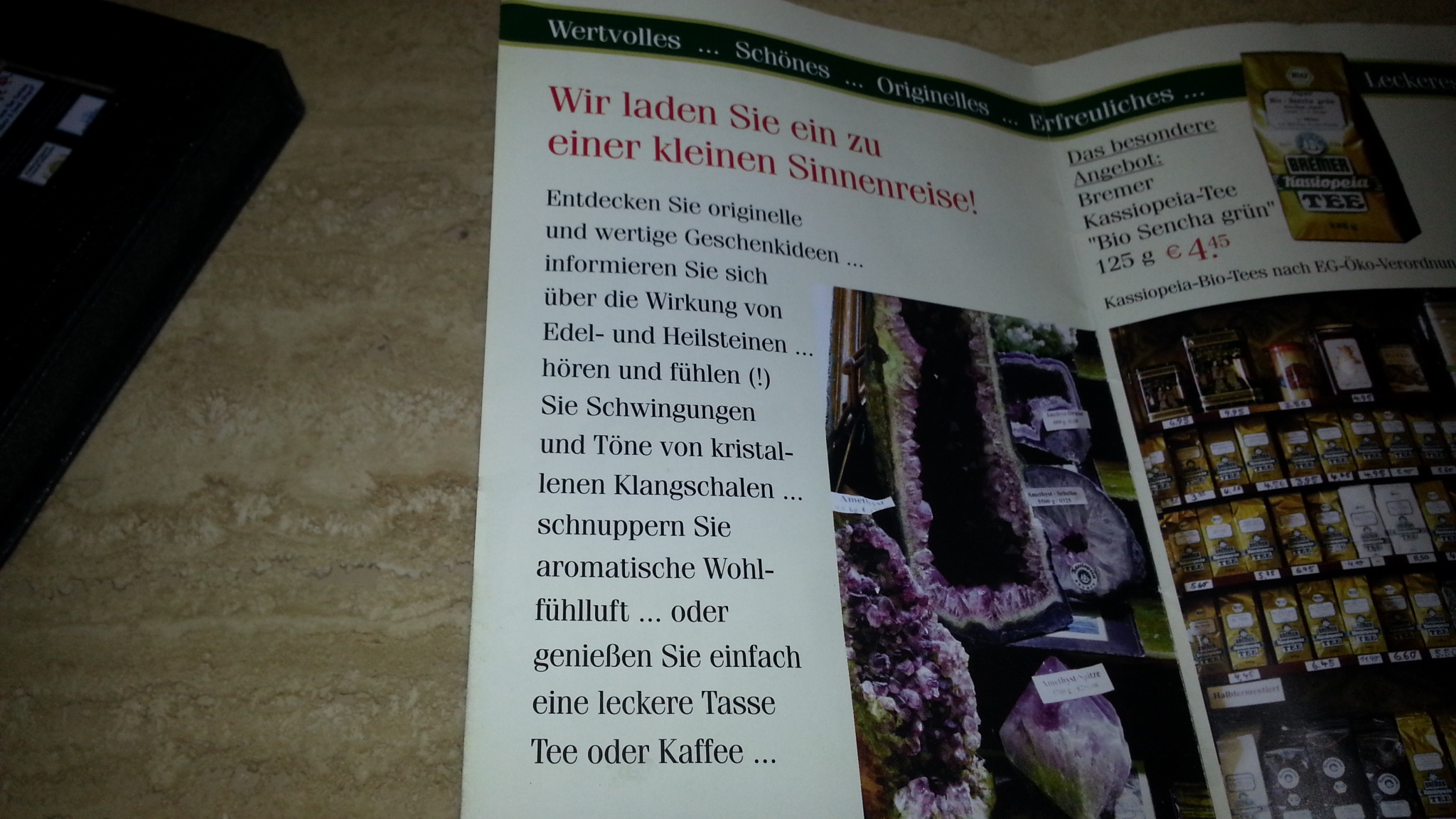 Es gibt in Bremen einen Mineralien und Teeladen, der noch Gründergeführt wird. Er existiert schon seit 58 Jahren. der Laden ist in einer schönen alten Villa, ein ganz eigener Charm. Dort bekommt man wirklich schöne Mineralien zu moderaten Preisen. Tee und Kaffe aus eigener Mischung und Röstung gibt es dort auch. Mir gefällt der Laden auf jedenfall sehr gut. Die Erfahrung muß einfach jeder selbst machen, ob der Laden für einen was ist, oder nicht. Von mir gibt es auf jedenfall einen Daumen hoch. Jeder Gast bekommt dort immer einen leckeren Tee angeboten.