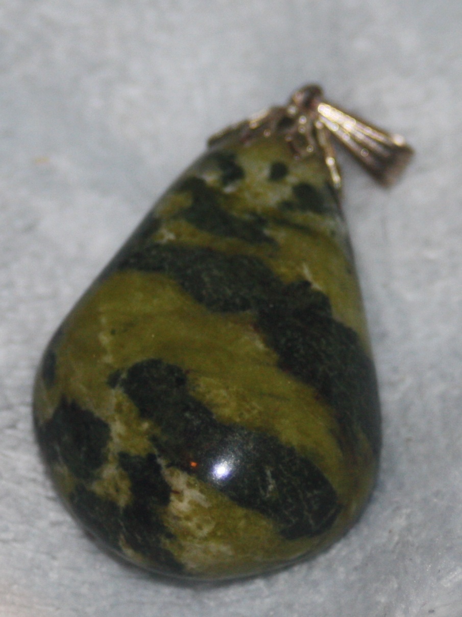 Dein bild ist etwas dunkel, wenn du schreibst hellgrün dann würde ich bei deinem stein schon eher auf einen Lizardit tippen, aber auf jeden fall sieht mir dein Anhänger wie ein Serpentin aus.