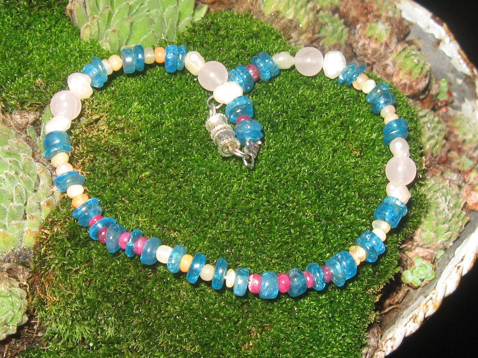 Es hat apatit, rosenquartz, welo opale perlen und rubin in sich.