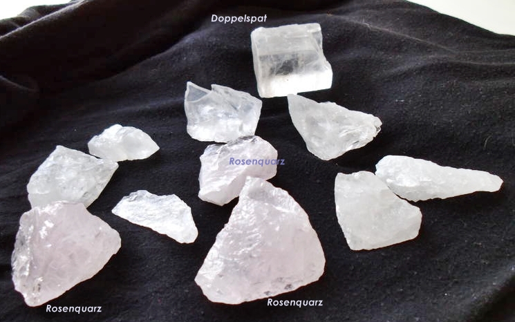 Auf dem ersten Foto haben manche meiner Meinung nach einen leicht rosanen Schimmer, das sind dann Rosenquarze (wenn die auch in natura eher rosa sind)