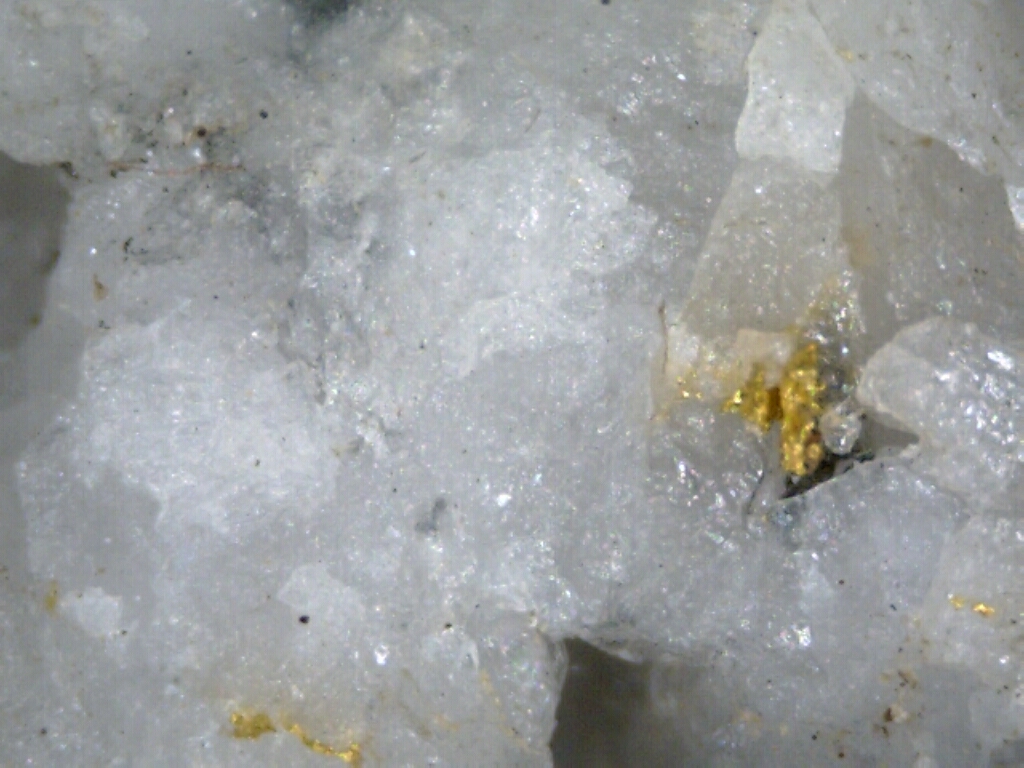 auch Heute noch mm-große Flitter von Gold auf Quarz.
