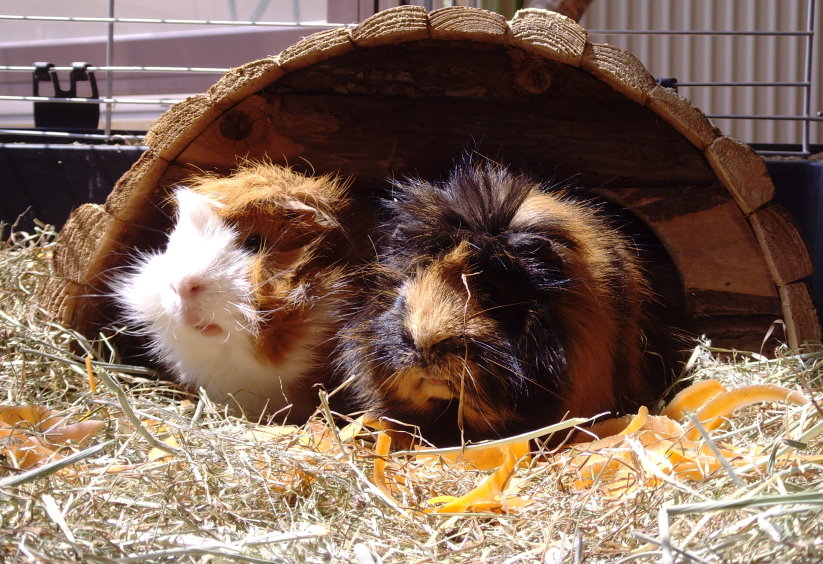 Da mein eines Meerschie nicht so auf der Höhe ist, habe ich gerade einen großen Heliotrop-Rohstein in den Käfig gestellt und sehr verwirrte Blicke geerntet