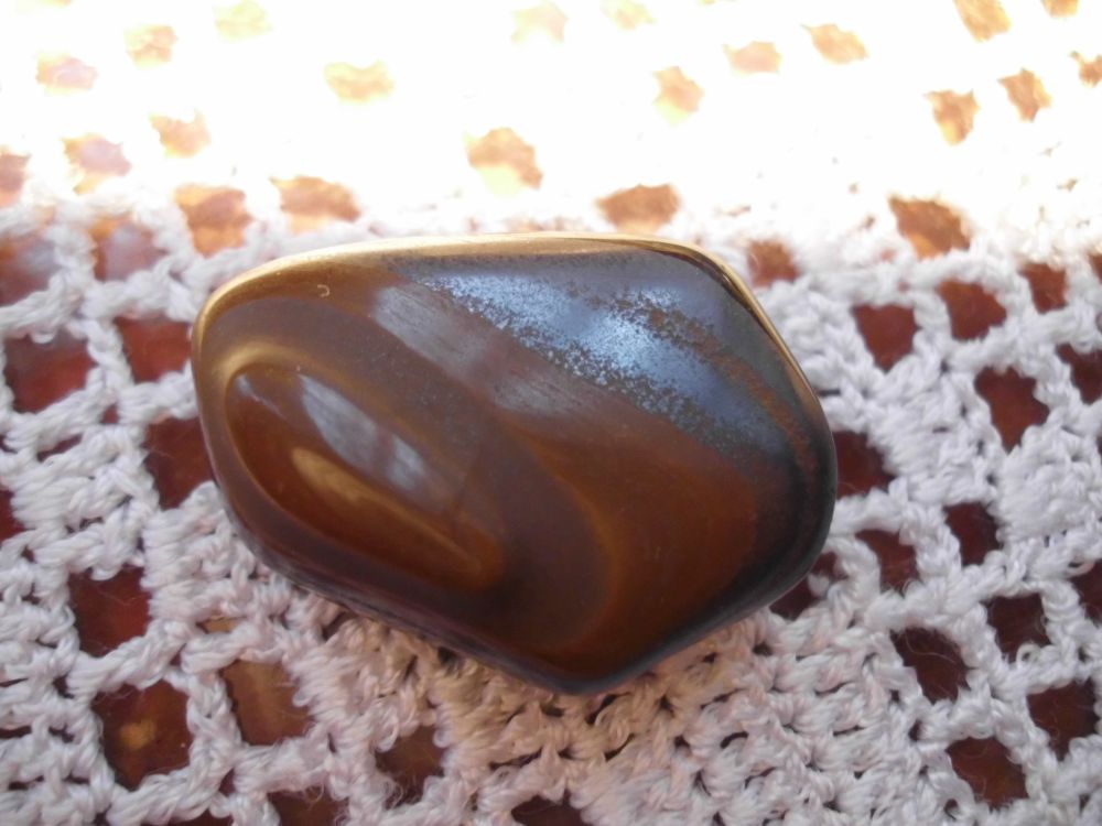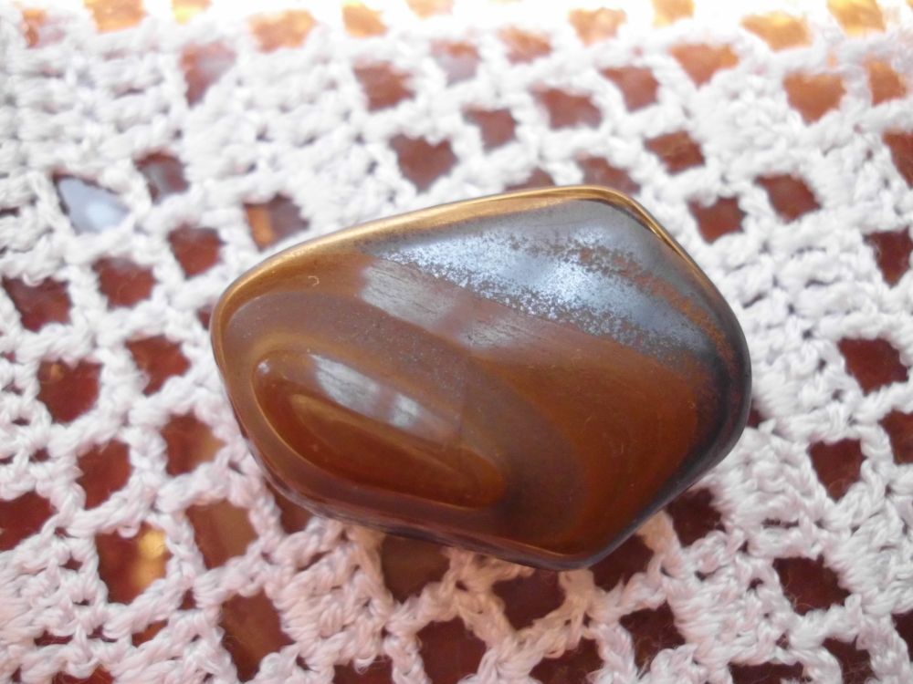 ein getrommeltes Tigereisen. Tigereisen ist ja ähnlich dem Tigerauge, nur eben rotbraun.