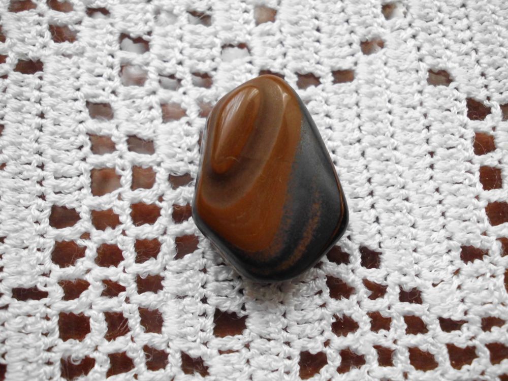 ein getrommeltes Tigereisen. Tigereisen ist ja ähnlich dem Tigerauge, nur eben rotbraun.