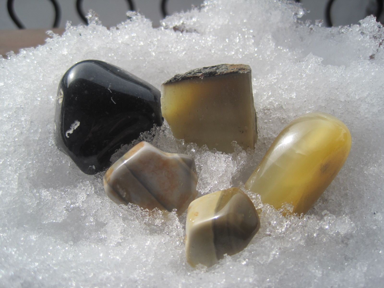 Alles tolle Steine :D ++"# Das gelb der Ostseejade kommt richtig gut im Schnee :D