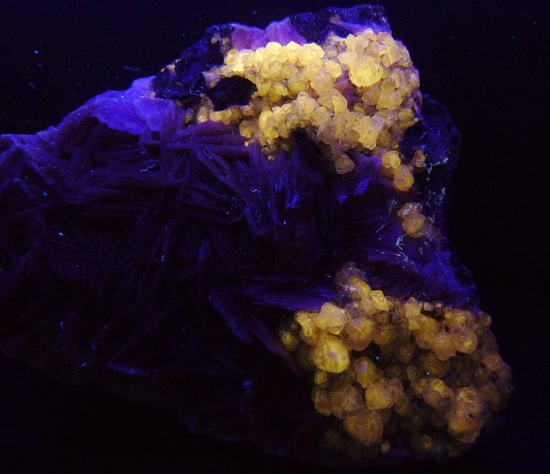 ...und trotzdem gibt es in diesem Rätsel einen Blick in die Anderswelt....die andere Welt der Farben....jenseits des uns vertrauten Spektrums....es geht um den Begriff der Fluoreszenz im Mineralreich; darum, dass viele Minerale unter UV-Licht eine ganz besondere Farbe zeigen. Und für viele Minerale sind diese Farben durchaus auch Bestimmungsmerkmale.