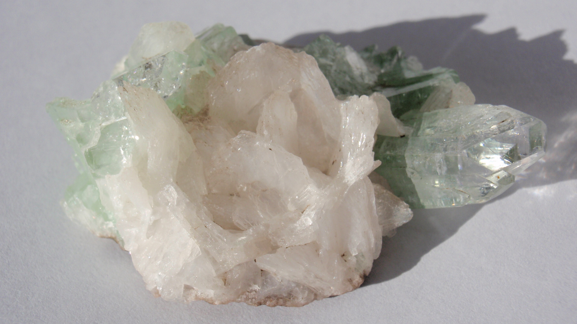 Zusätzlich: Die Prismenflächen beim Apophyllit schließen 90 Grad Winkel ein. Das ist auch ein ganz klares Unterscheidungsmerkmal zum Quarz.