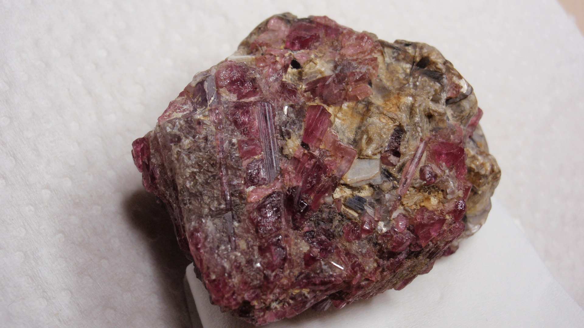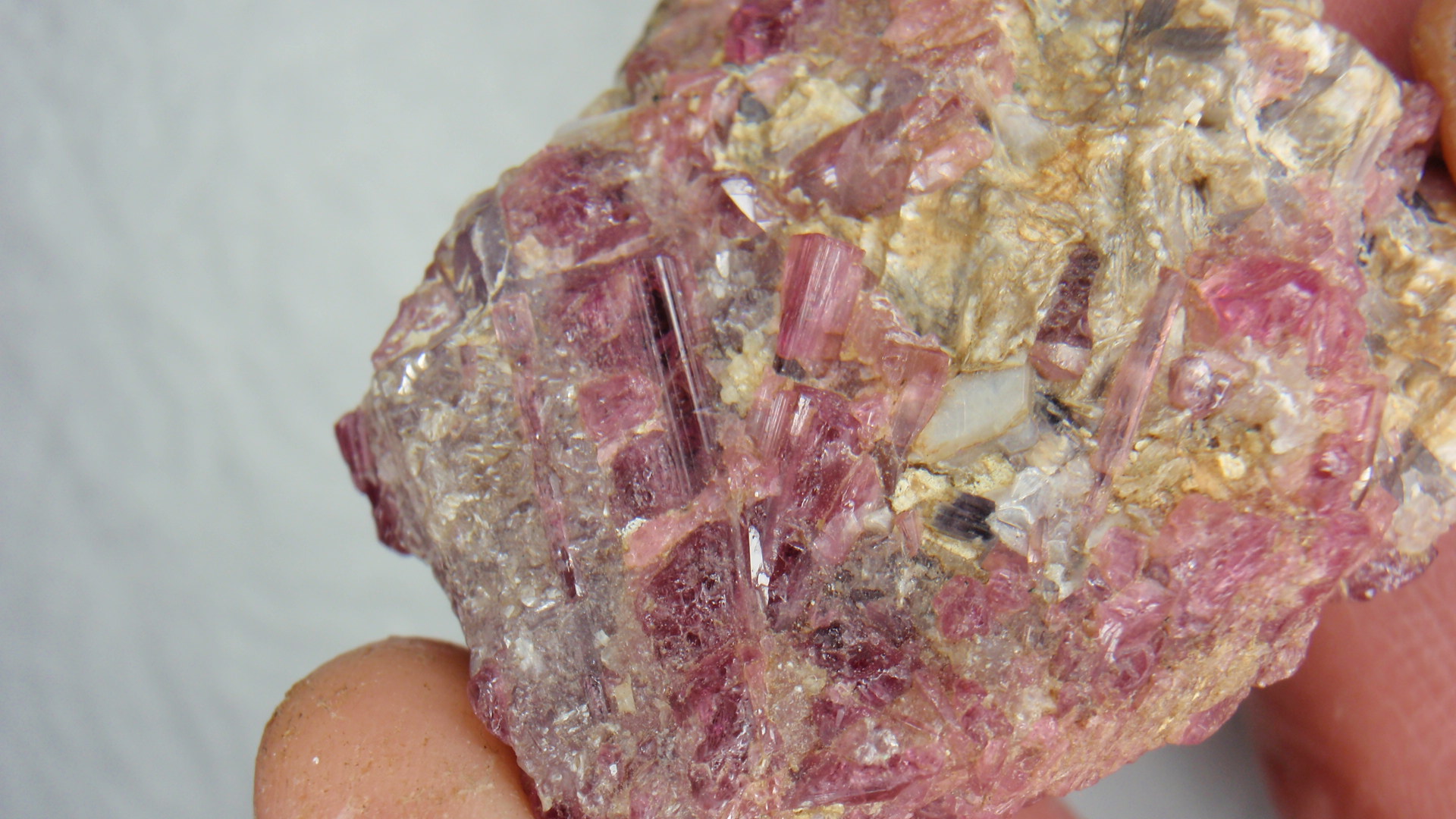 Klar sind das Turmalinkristalle der Varietät Rubellit. Kommen sicher aus Brasilien...irgendwo aus dem gigantischen Komplex der Minas Gerais.