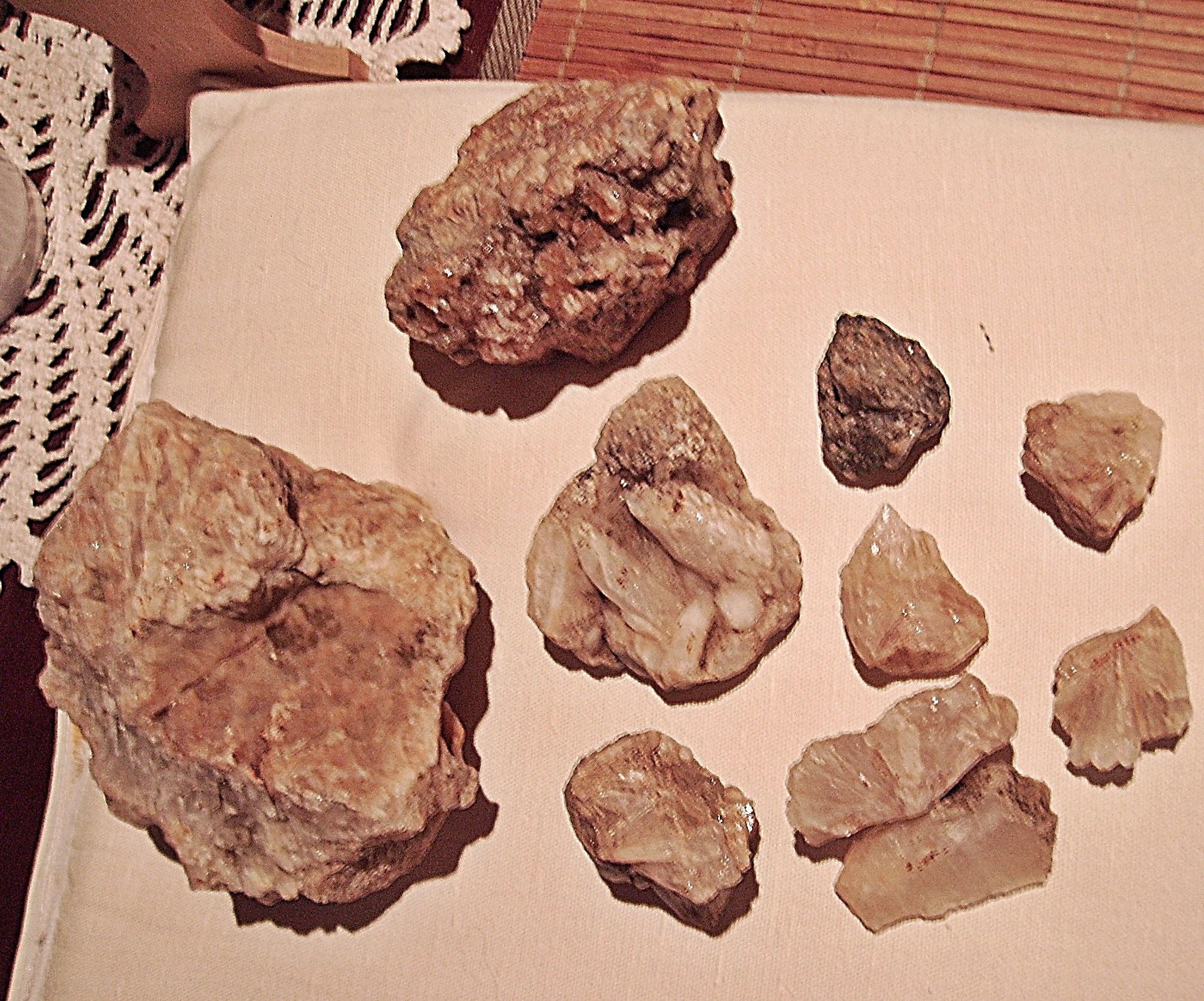 auf Bild 1 die 5 oberen rechts - sogar der Dunkle, der ist komplett mit Mangan o.ä. überzogen - und der unten mitte