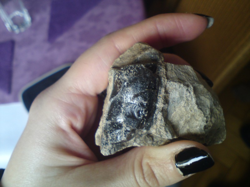 Das Hauptgestein mit dem schwarzen "Xenolith" sieht aus wie ein Kalkstein, Mergel oder etwas in diese Richtung. Und der schwarze Xenolith wird wohl in Richtung eines "Kieselgesteins" gehen; also ähnlich Hornstein / Feuerstein etc. Was Du mit "Ich tippe auf irgendwas geschmolzenes, da es an manchen Stellen wie Glas abgeplatzt ist" siehst, ist der auch für Hornsteine, Feuerstein und Obsidian typisch muschelige Bruch. Also bitte einen Fundort und am besten fragst Du Deinen Bruder, ob diese Kalksteine / Mergel (also das grau-braune, in dem das schwarze sitzt) dort häufiger vorkommen.