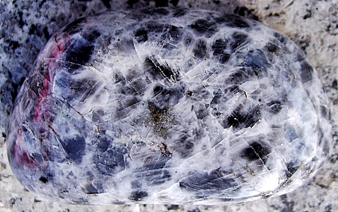 Zurück zu den Strukturen: Diese Strukturen sieht man übrigens auch häufig im Inneren von z.B. blauen Calcit Trommlern; und dann geben sie eindeutige Hinweise für die Bestimmung. Ihr erinnert euch vielleicht an den einen oder anderen thread, in dem ich so etwas erwähnt habe. Wenn man so etwas also anhand eines Calcit Rohsteines oder Bruchstückes gesehen und verstanden hat, dann wird man es auch in einem Trommelstein sehen können.