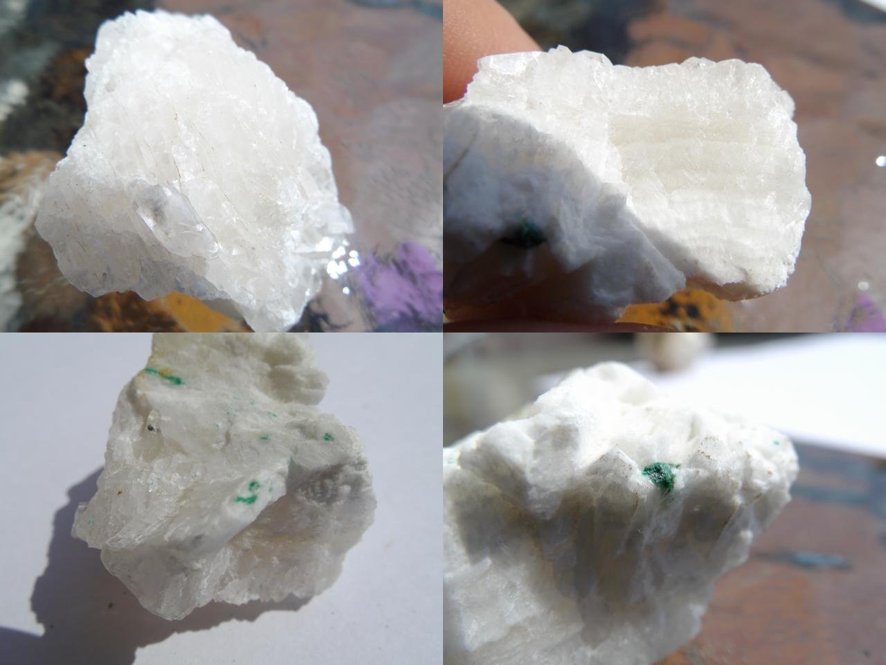 Dieser hier ist, denk ich, ein Aragonit. Aber warum hat er grüne Punkte?