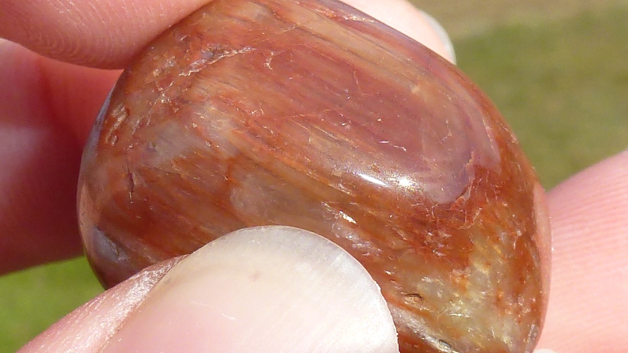 Auf jeden Fall ein Quarz; also eine Art Kieselgestein. Teils rot gefärbt durch Eisen-Verbindungen.