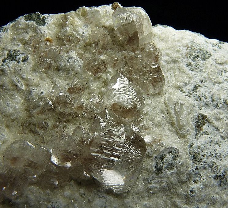 In der Tat, es handelt sich um teils zonierte, diamantglänzende Apophyllit Kristalle aus Indien mit einer sehr seltenen Parkettierung.