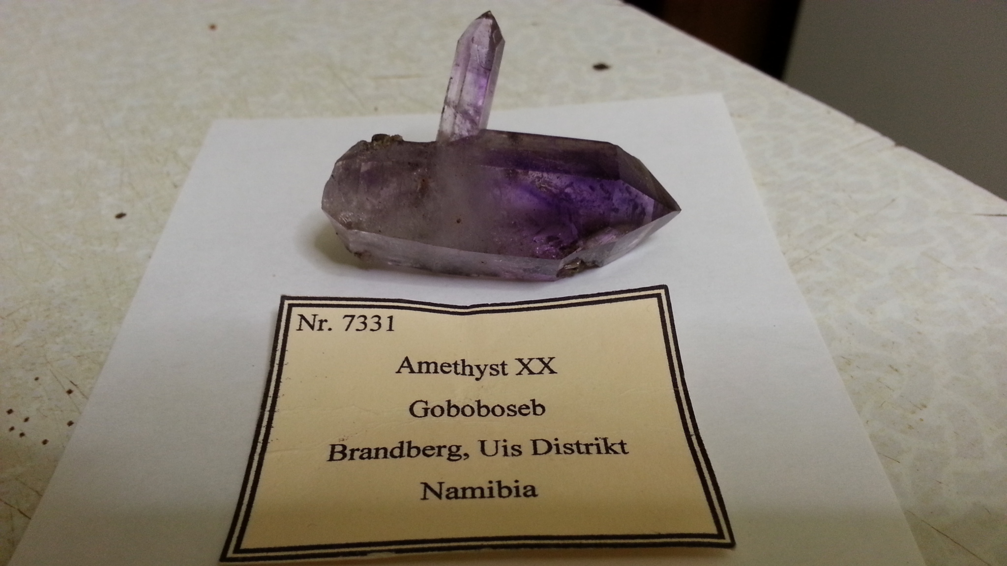 Dieser wollte auch dazu, es ist ein Palisaden Amethyst, woher kann ich leider nicht sagen, glaube aber, aus Deutschland. :-) ++"#
