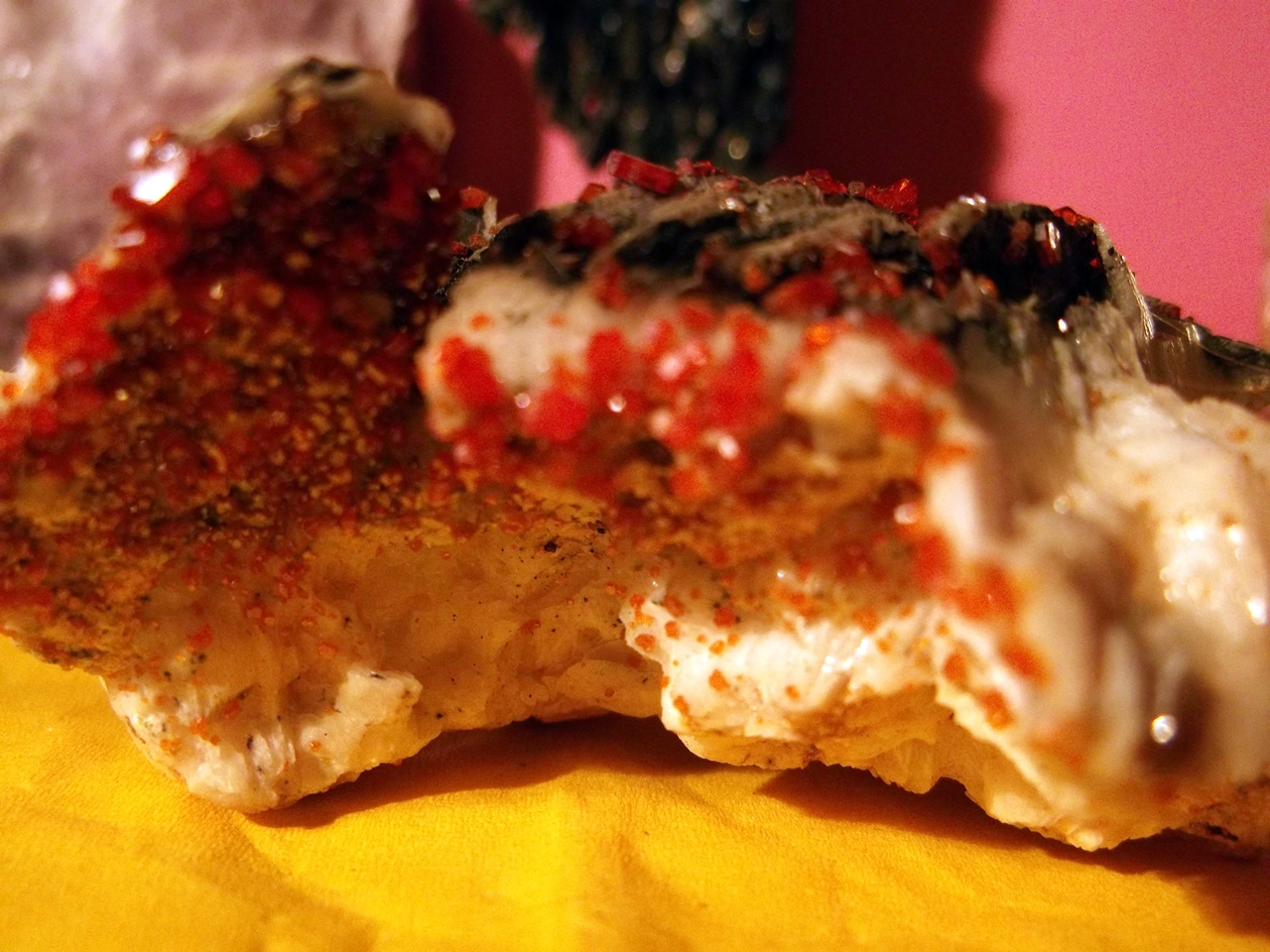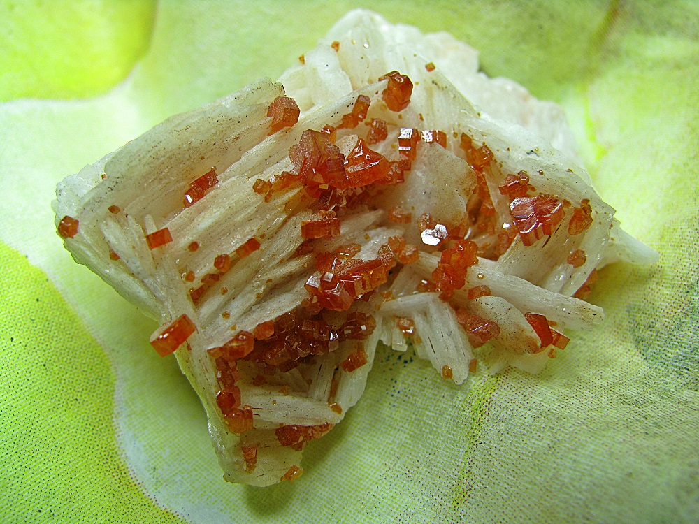 Und ich pack dann auch noch mal einen Vanadinit auf Baryt mit drauf, einfach weil ich ihn wunderschön finde.