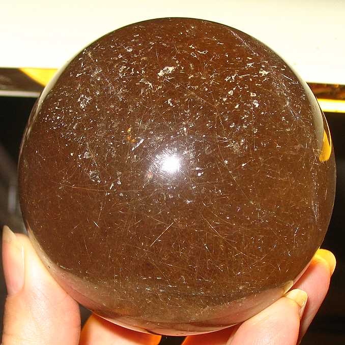 eine leicht rauchige Kugel mit Rutilquarznadeln