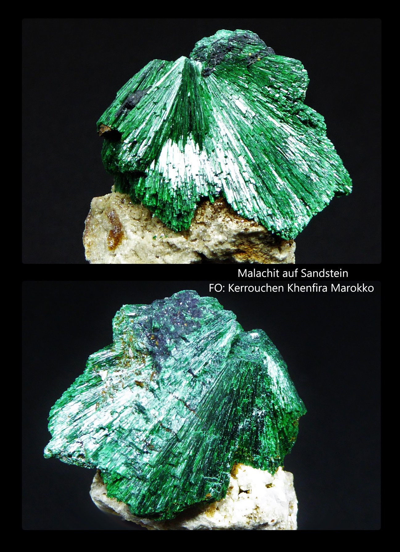 Malachit - strahlenförmig gewachsen: