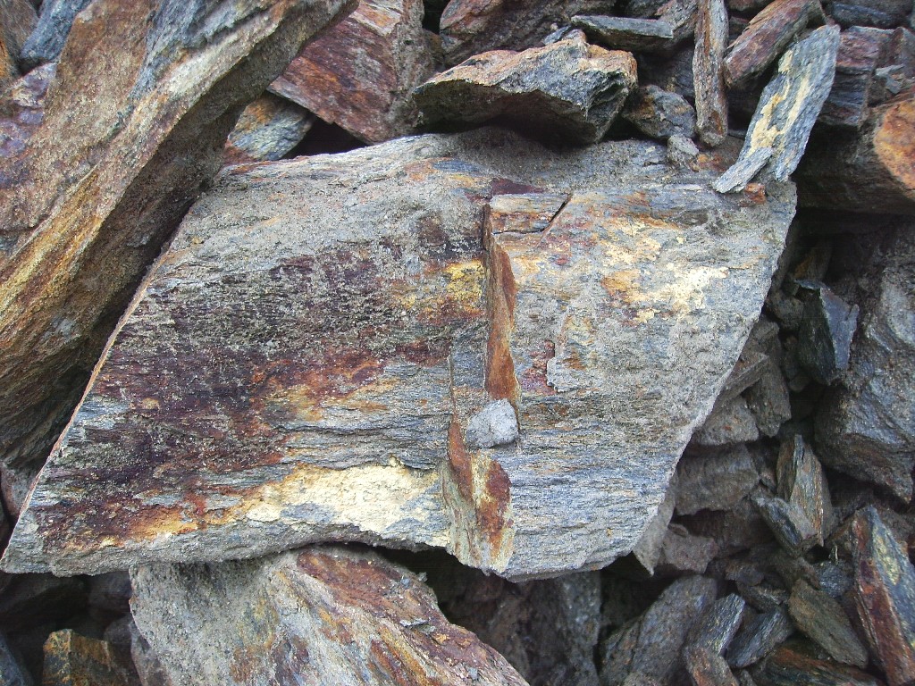 einen besonders schön schillernd bunten PHYLLIT ( Urschiefer bzw. Urtonschiefer ) mit sehr viel Glimmer, den hatten wir ja schon mal im Beitrag über Marmor auf ner Baustelle