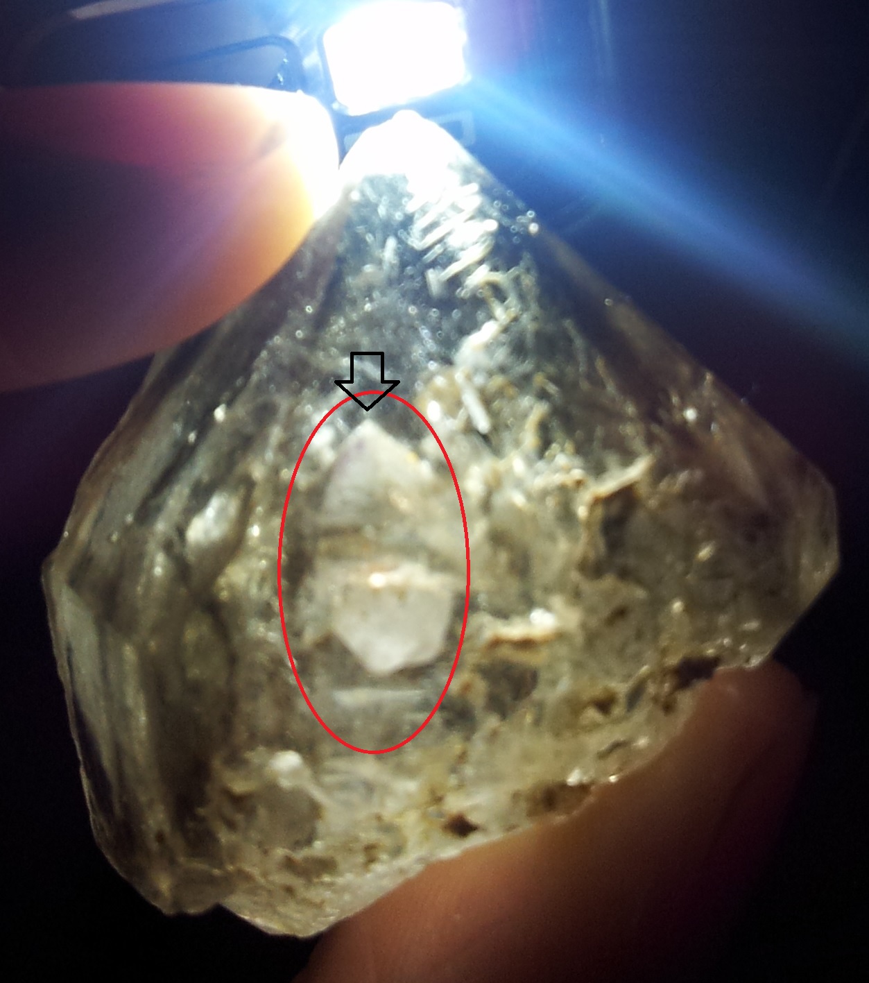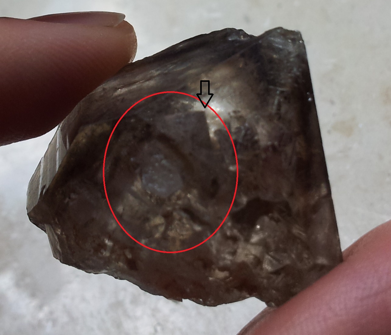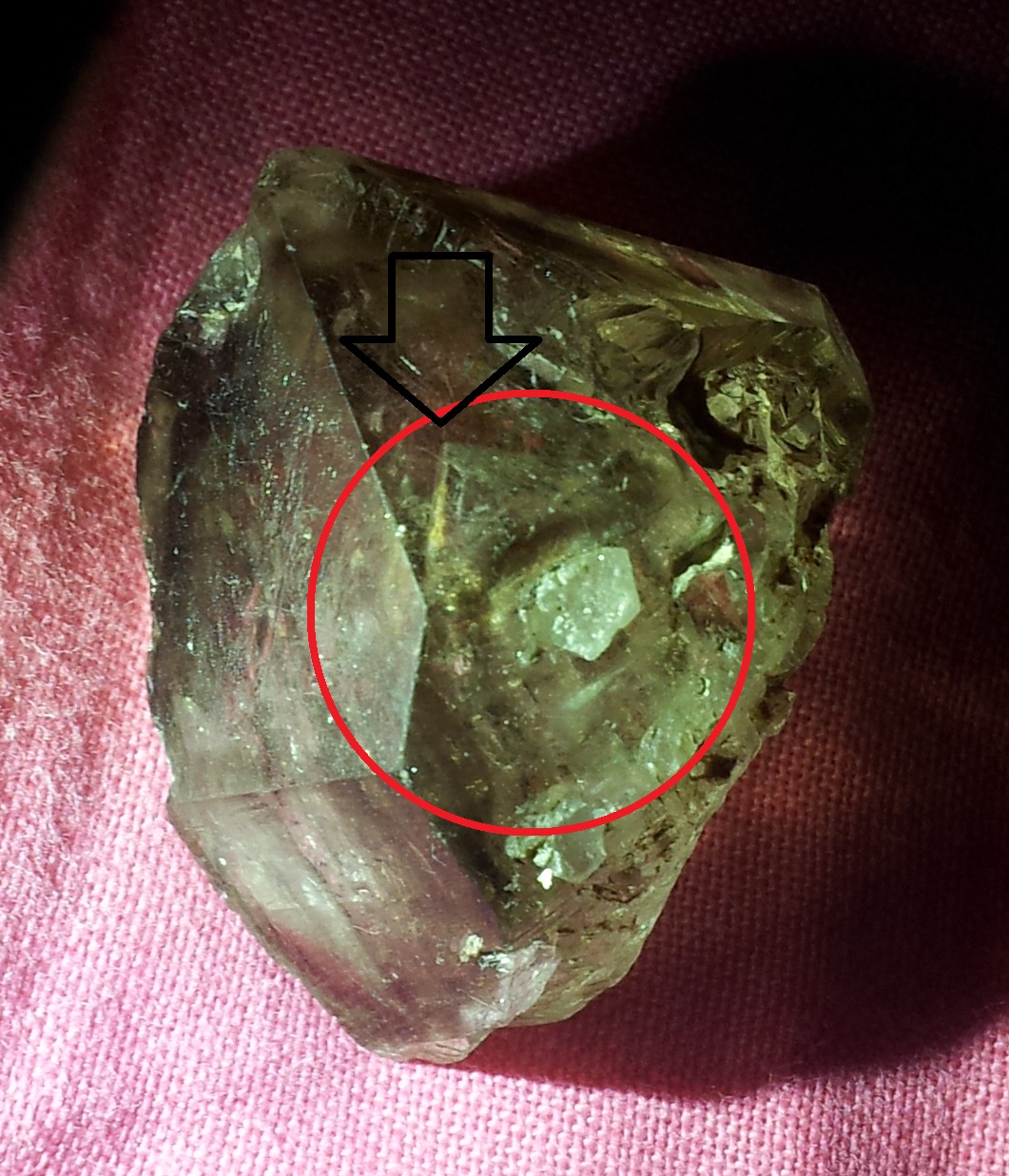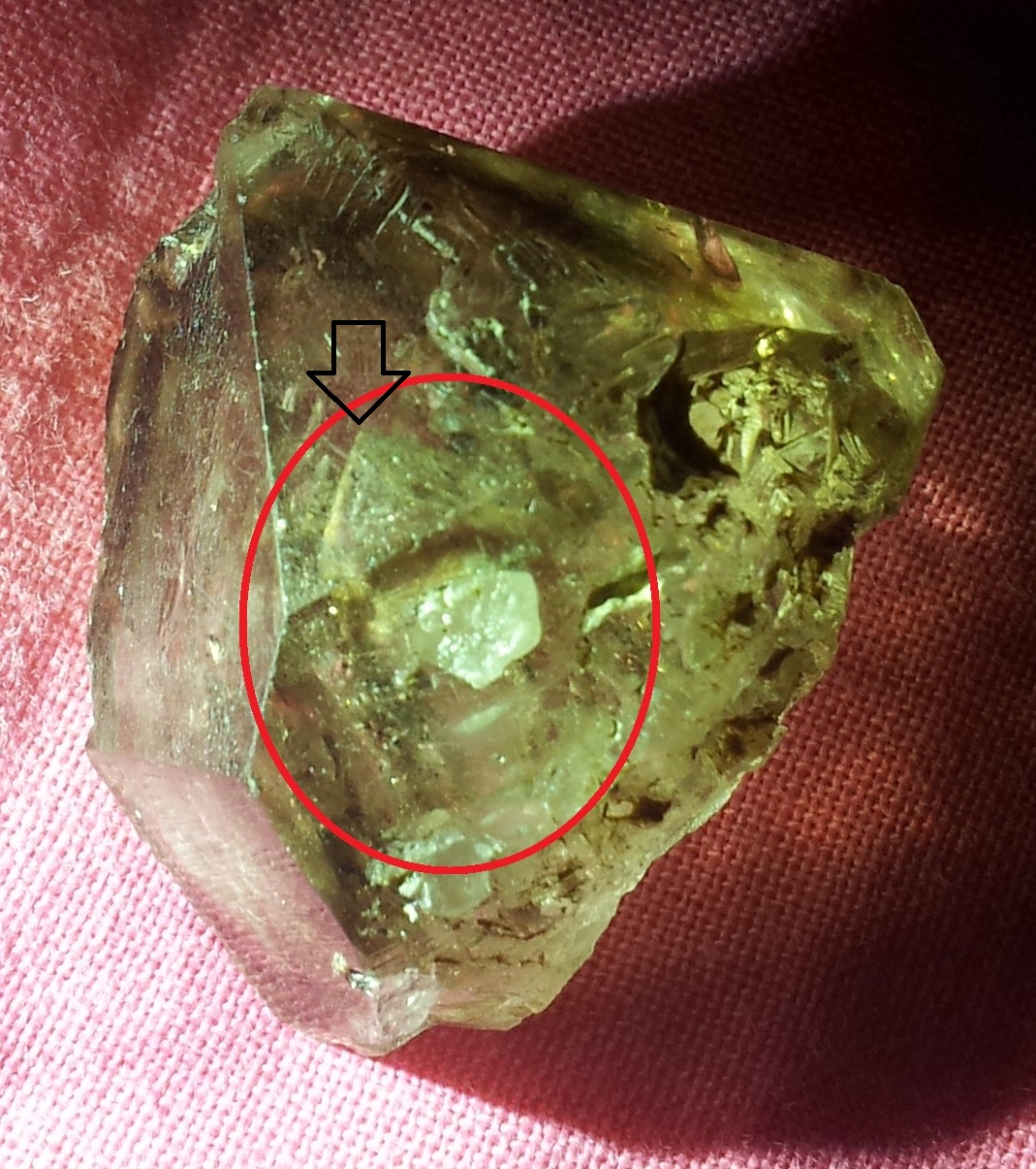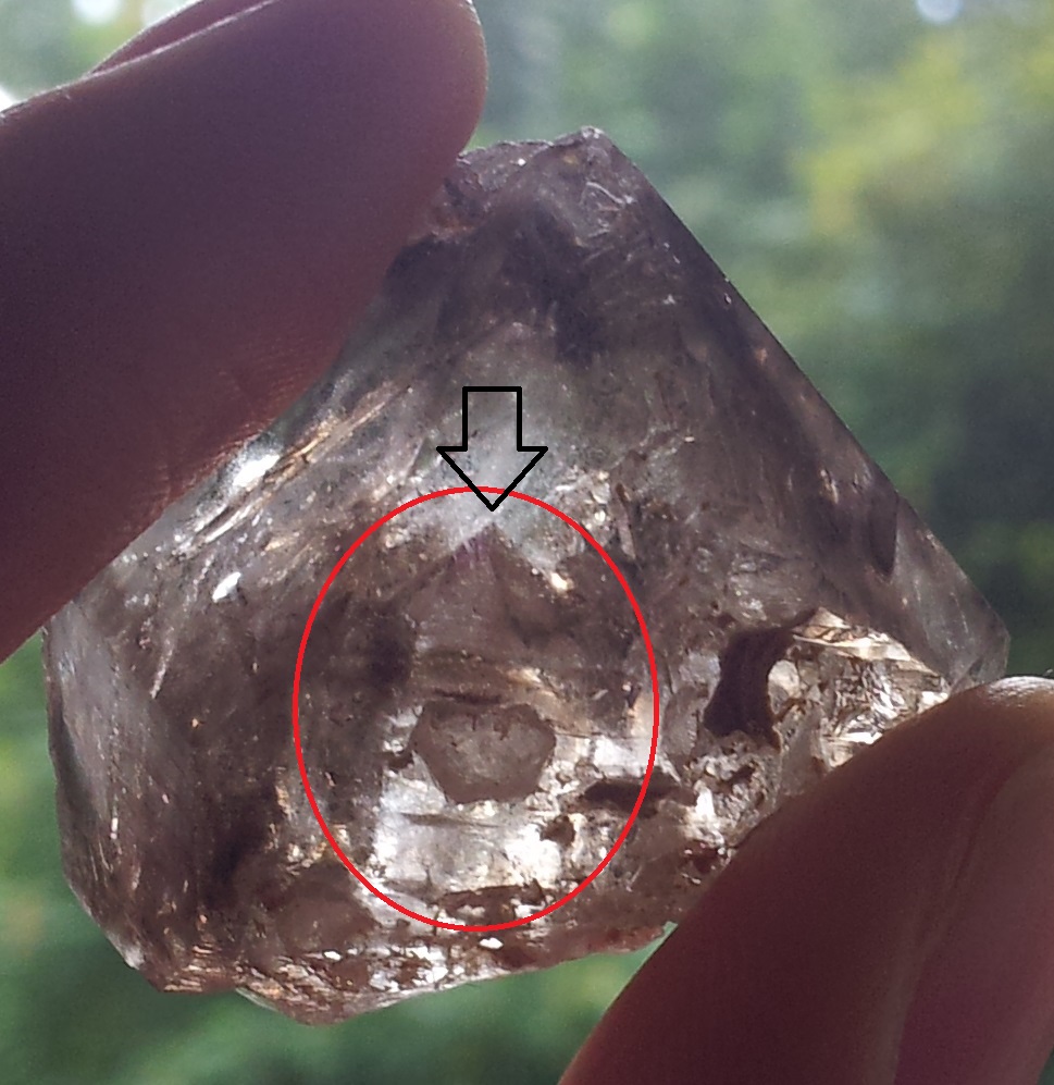 Zu meinem "Problem". Ich habe heute einen tollen Rauchquarz-Urzeitwasser-Elestial zugeschickt bekommen, und dieser hat, wie ich es nach längerem Anschauen gesehen habe, einen Kristall, der in den Kristall gewachsen ist. Ich habe gedacht es sei vielleicht ein Phantom, aber man sieht (leider nicht so gut auf den Photos) Endflächen und eine deutliche Spitze und es sieht, nun ja, nach einem wirklichen Kristall aus. Ich will mir 100 % sicher sein, falls das geht und deswegen seid ihr jetzt dran. Vielleicht hat jemand von euch Erfahrungen mit einem Manifestationskristall? Könnte dies einer sein? Ich danke euch jetzt schon mal!