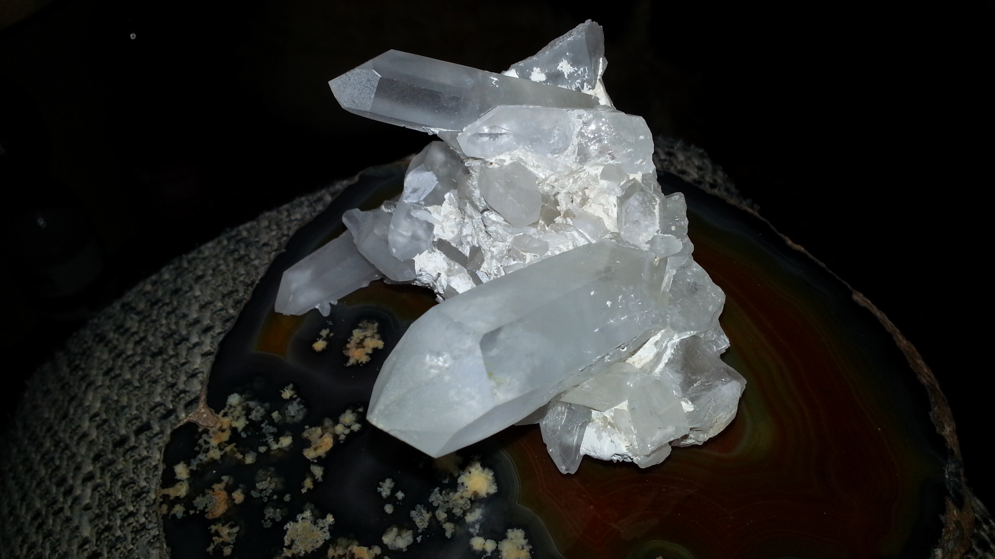 Das sind meine drei kleinen, schönen Bergkristallstufen. Finde sie sehr makellos, kein einziger Kristall ist abgebrochen, oder fehl gar.