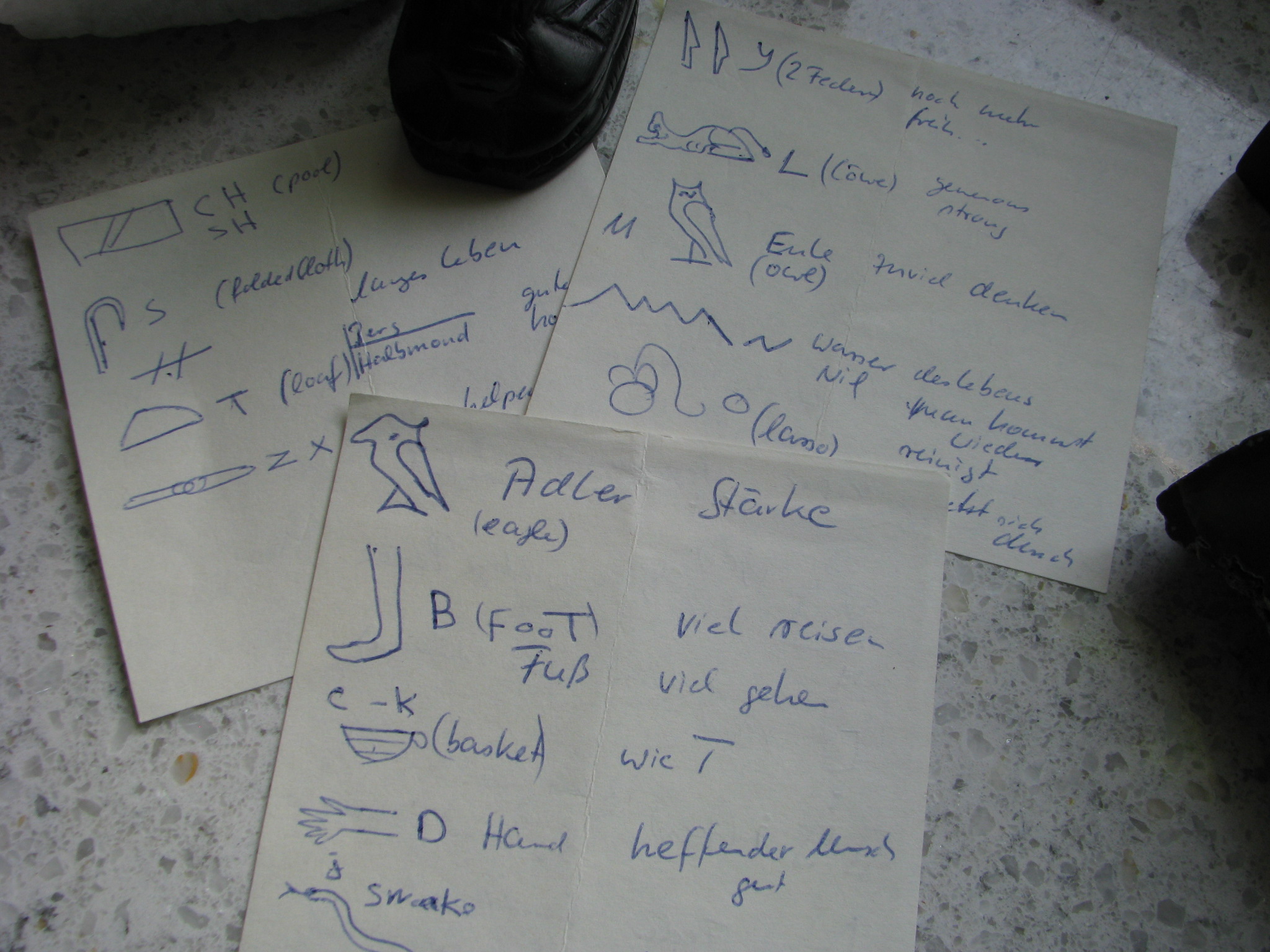 Heute bin ich nach den hier http://www.blinde-kuh.de/egypten/hieroglyphen.html gegangen. Ich hoffe der Link ist für Manne ok.