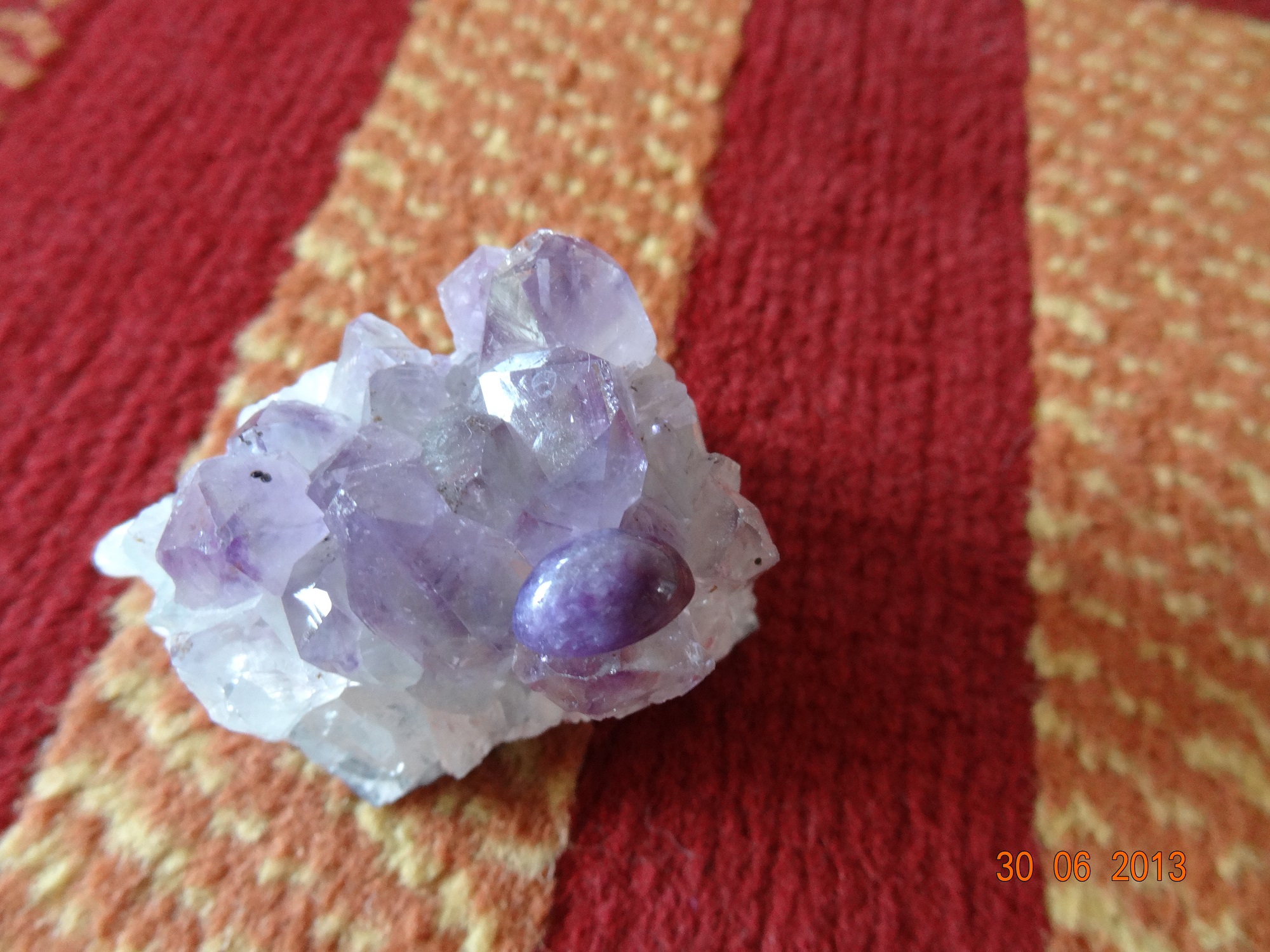Er hat einige dunklere lilane Adern, die anderen sind recht hell, aber es ist halt viel weißliches Gestein dazwischen (das sieht man gut auf dem Durchleuchtungsbild. da finde ich die Farbe auch am passensten.. Ich würde eher so in Richtung Fliederfarben als Lila gehen, aber im Beschreiben bin ich sehr schlecht