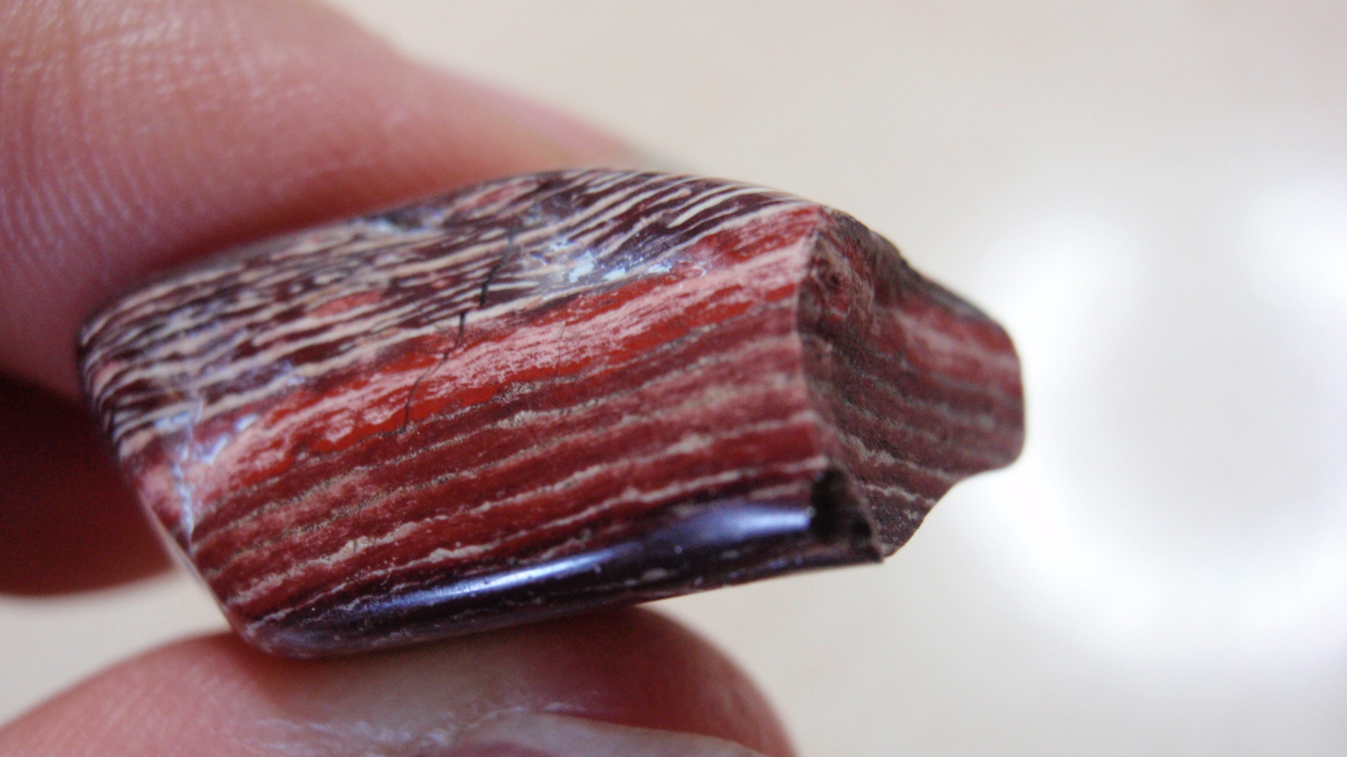 Er hat viele dunkelrote Schichten mit ganz feinen weißen Schichten abgesetzt - wie gutes Rindfleisch leicht marmoriert!