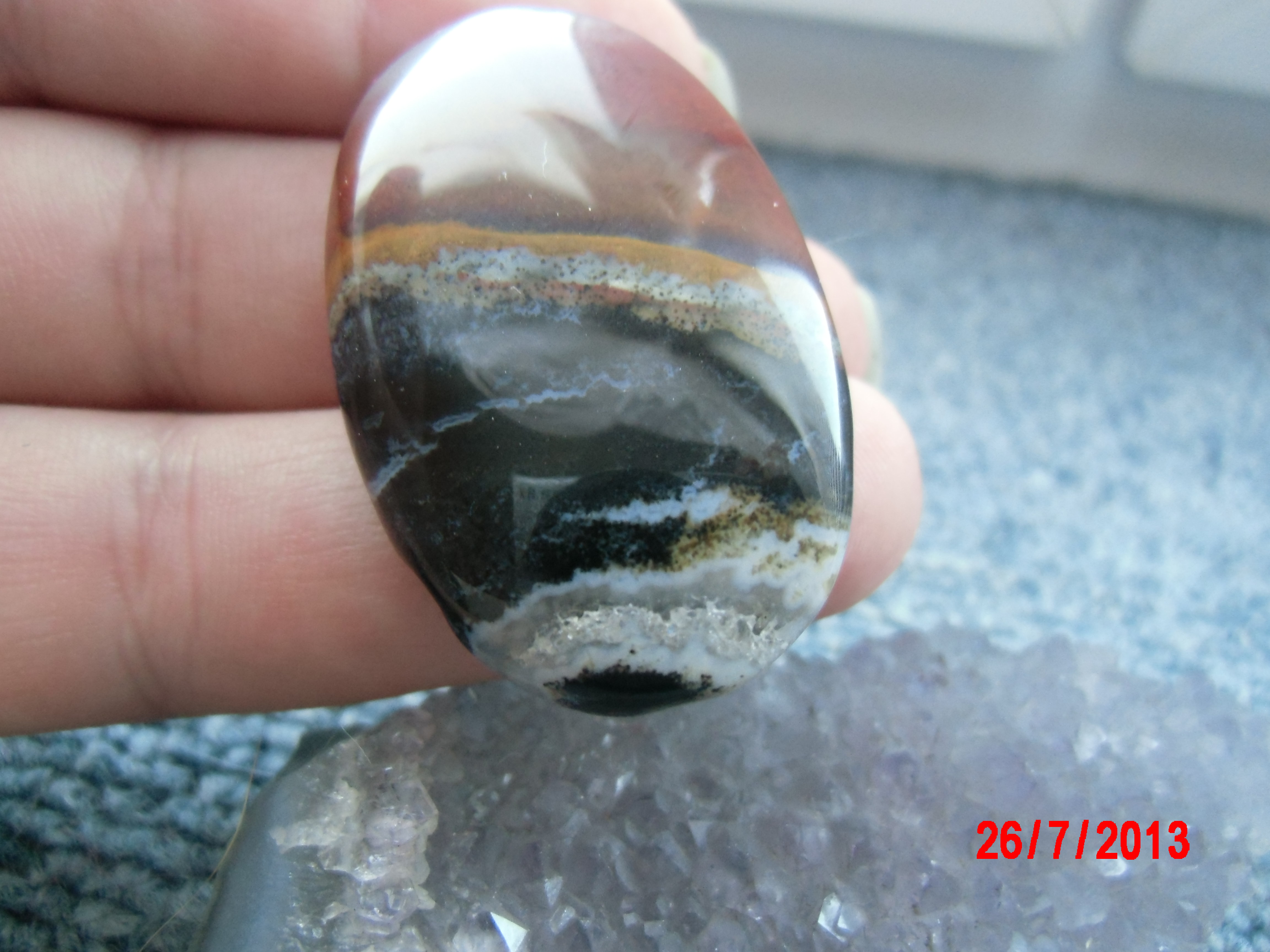 es ist ein recht hochwertig getrommelter Achat,Jaspis oder Hornstein.