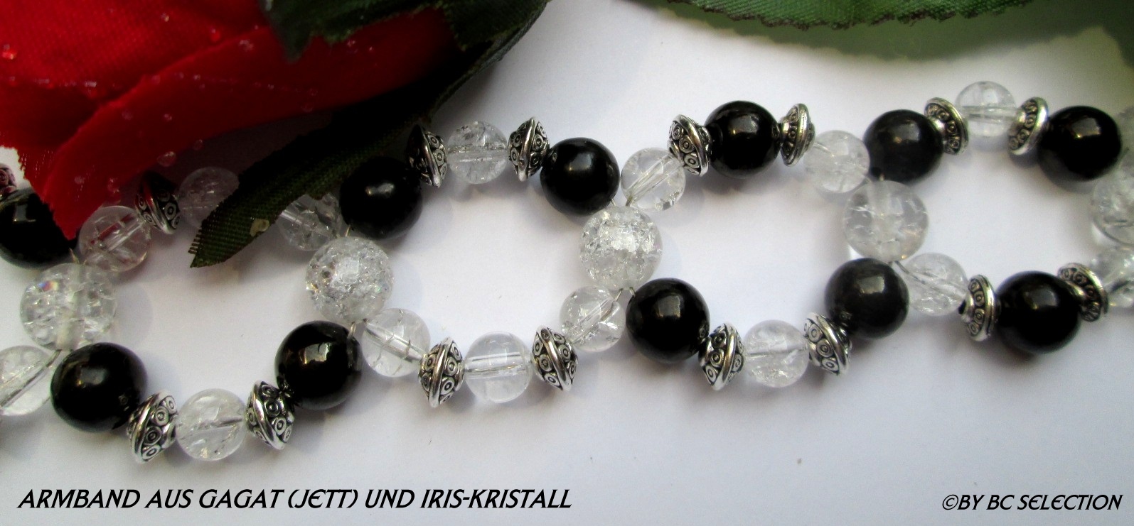 Ende Juni war ich bei meinem Grosshändler in Idar-Oberstein und habe mir einen Strang Gagat mitgenommen. Heute habe ich die Kette und das Armband gemacht.