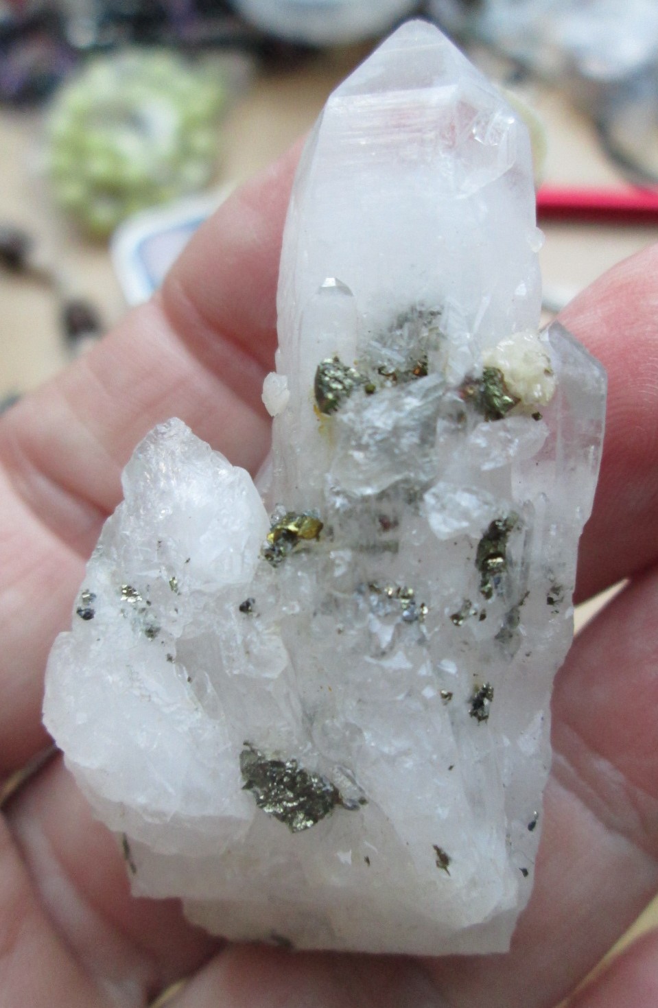 Es sieht aus wie eine Bergkristallspitze mit Pyrit und Turmalin. Gibt es diese Kombination?