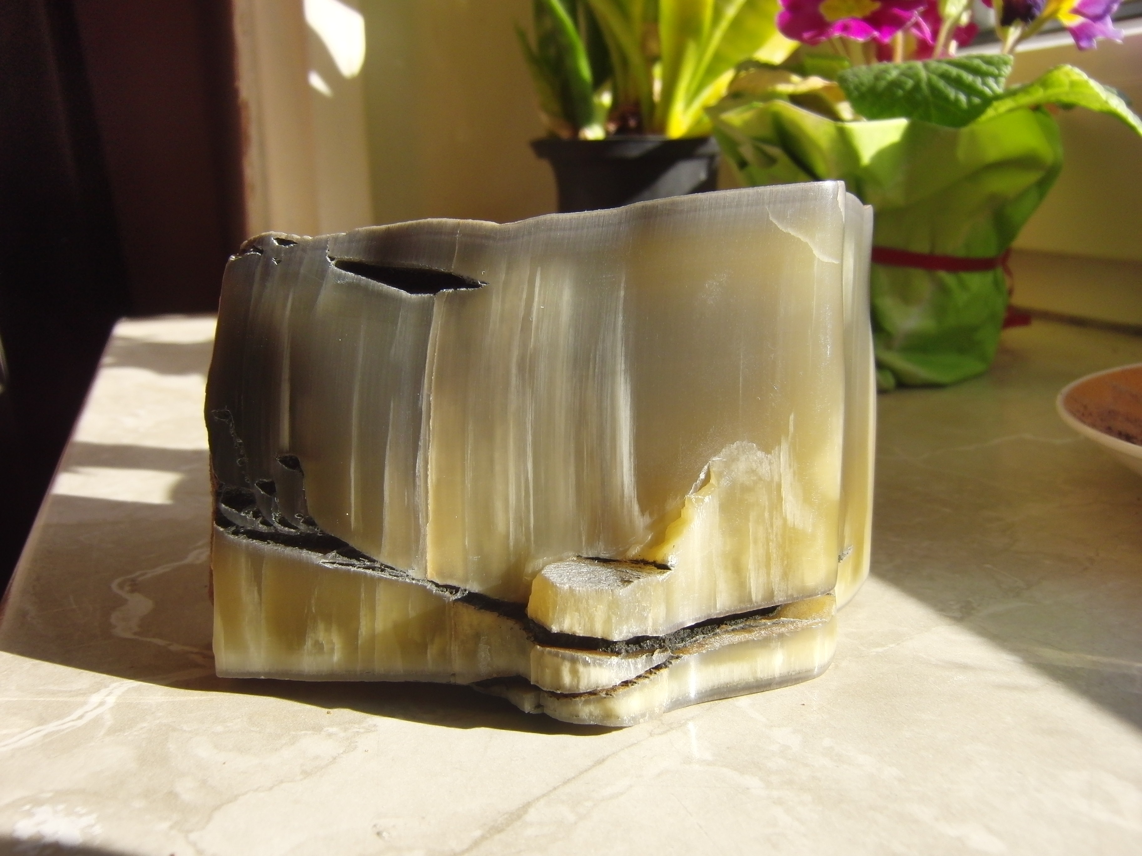 auch ich sammel und bearbeite Faserkalk seit vielen Jahren. Zum Bearbeiten setze ich auf Schleif- und Polierschwämme (100er, 400er, 800er und 1000er). Der Dremel kommt nur selten zum Einsatz. Deine Steine sehen extrem gut poliert aus. Welche Polierpaste benutzt Du. Die Dremel-Polierpaste verursacht leider Verfärbungen im Stein. Derzeit benutze ich als "finish" ein leichtes Waffenöl. So ganz glücklich bin ich aber noch nicht damit. Wenn Du mir hier noch einen Tipp geben könntest, wäre ich glücklich.