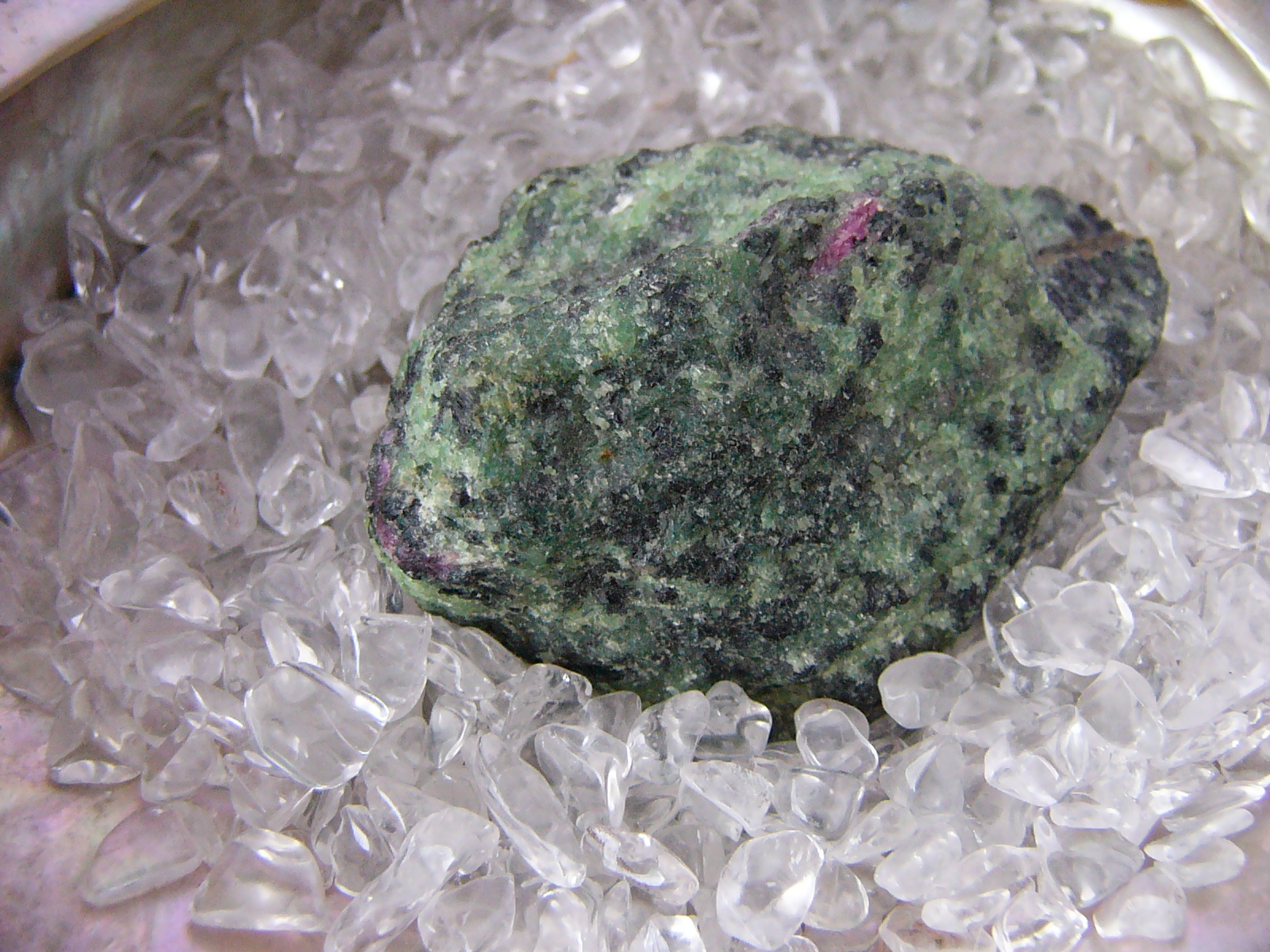 Rohstein mit ganz kleinen Rubineinschlüssen die bei der Heilwirkung keinen Einfluss haben.